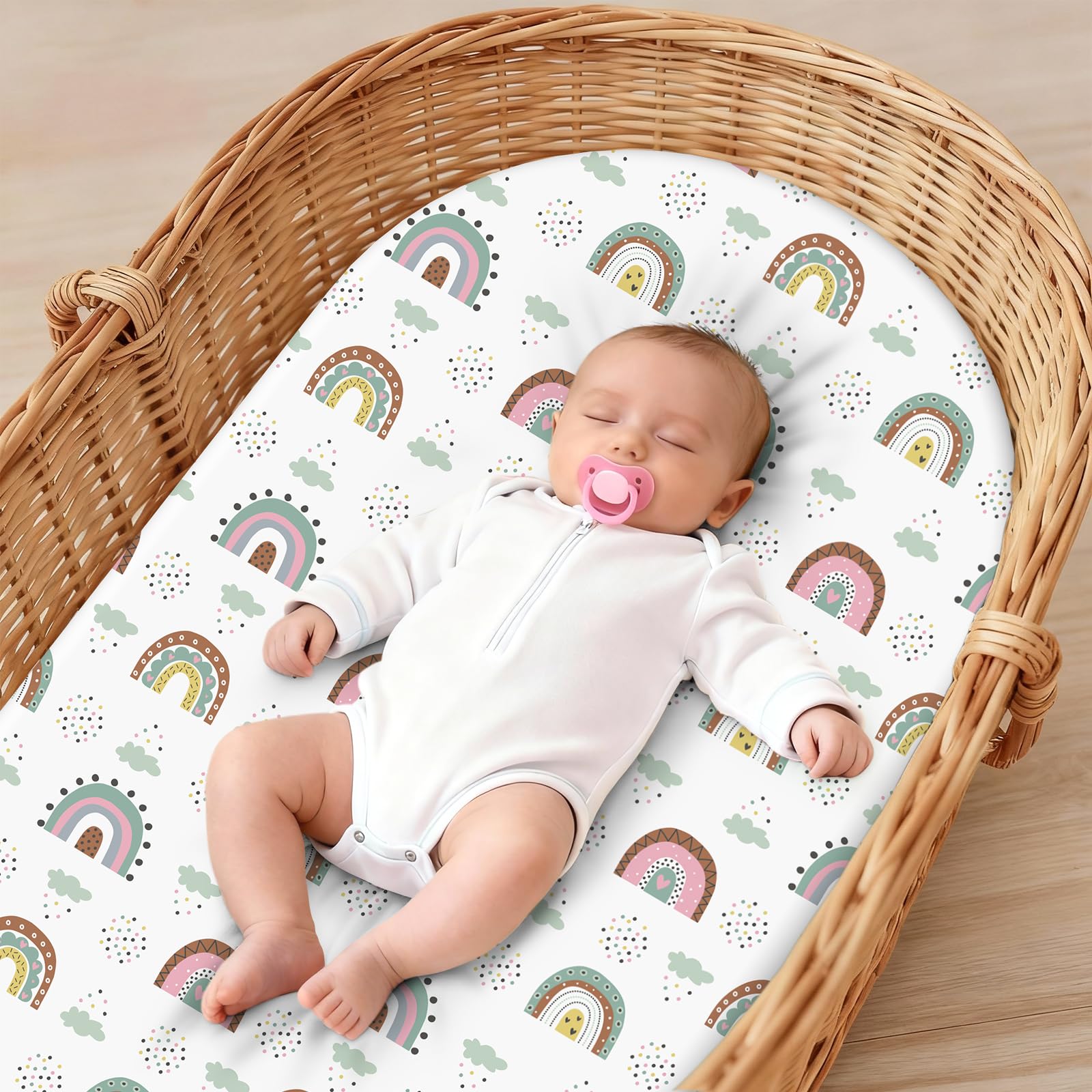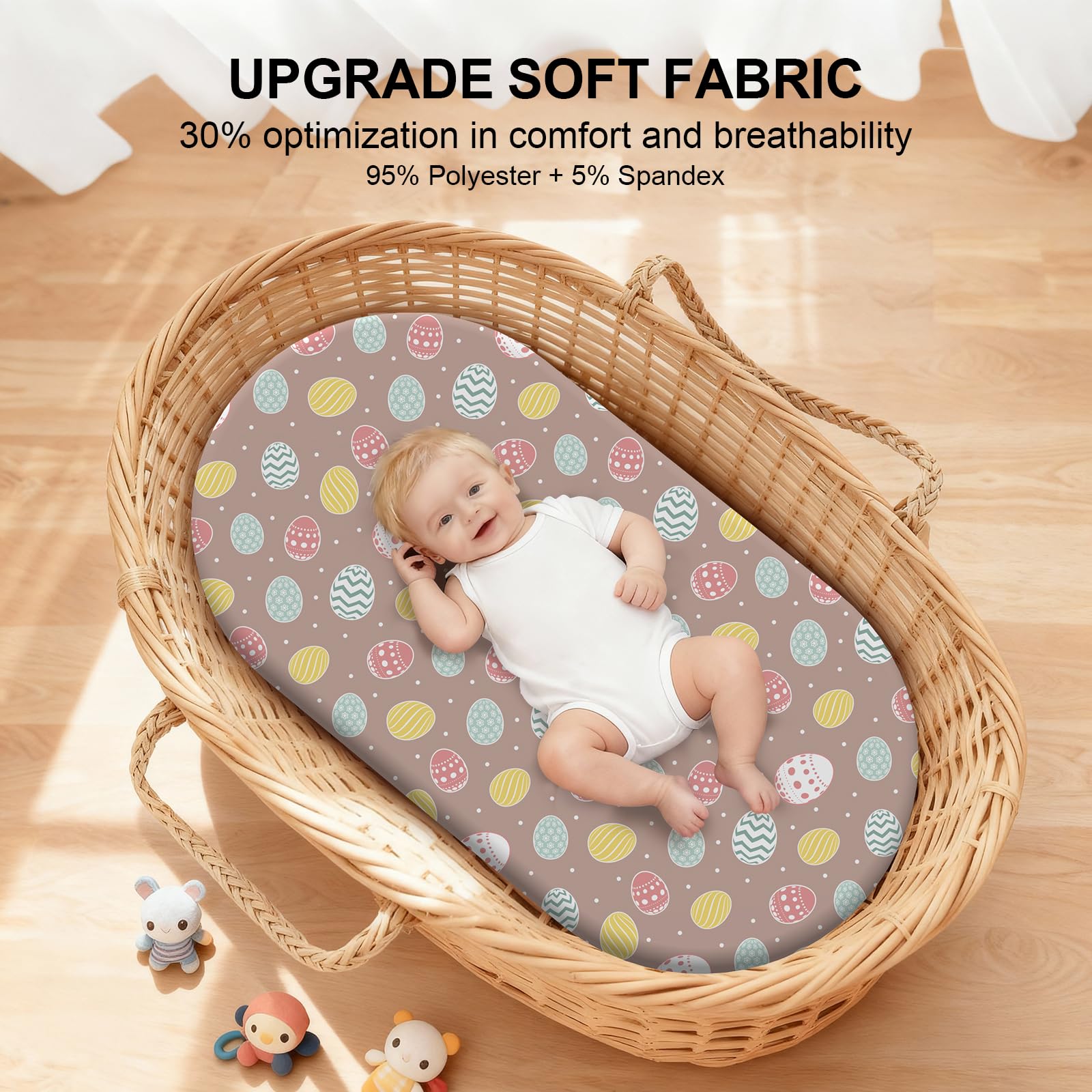 High-quality & Safe: Our bassinet fitted sheet is made from ultra-soft microfiber woven into a soft knit fabric. It keeps your baby safe while providing a breathable, soft surface perfect for sensitive skin, ensuring a soft, smooth, and comfortable feel while sleeping or playing in the bassinet.