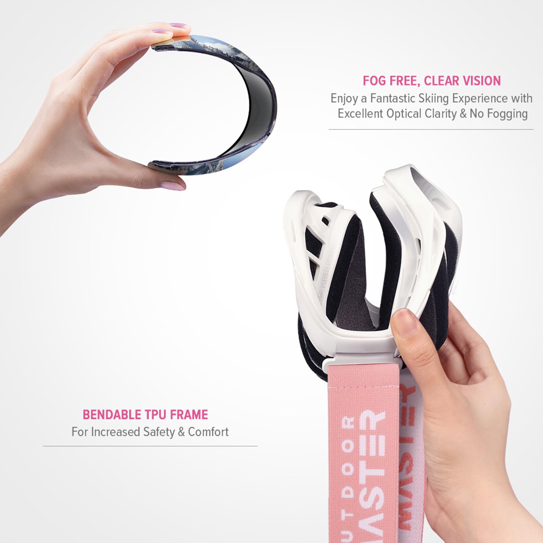 Anti-Fog Lens and Excellent Optical Clarity: Dual-layer lens technology with anti-fog coated inner lens gives you a fog-free ski experience