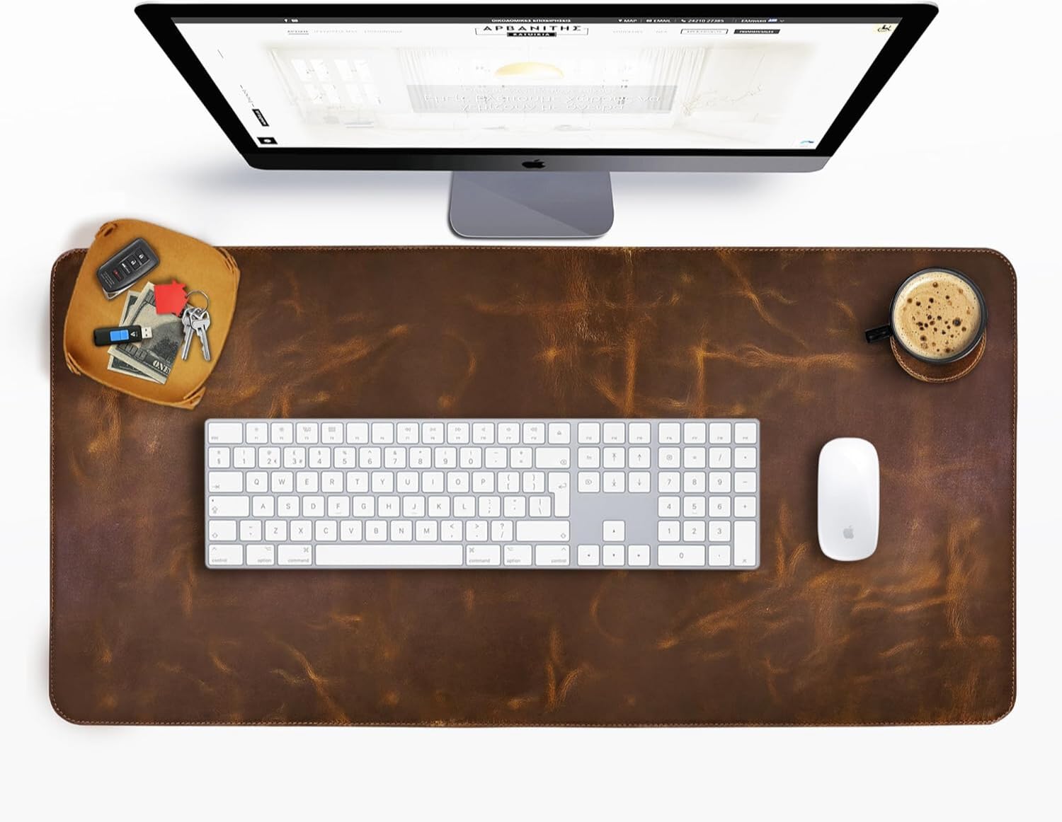 LEATHER TRAY COASTER: Amazing desk blotter pad plus a beautiful leather tray and leather coaster set. Like our desk pad, the gaming mouse pad, mens valet tray and drink coaster are pure premium leather