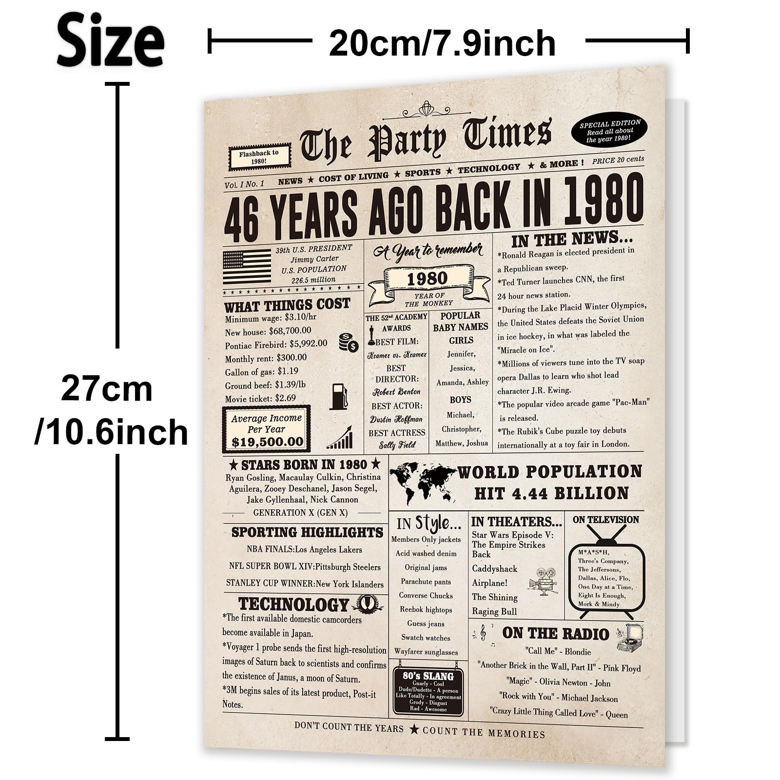 It's a great conversation piece. It's interesting to look back and see how much everything cost back then and the history of what was going on. An unique and memorable birthday gift when you don't know what to get for someone. The perfect remembrance to tuck in a gift box or gift bag. With its classic and retro style, this 46 birthday card will bring a vintage touch to your decorations, make your gift stand out. Ideal gift idea for your father, mother, husband, wife, sister, brother, best friend, colleagues, classmates, teachers, etc.