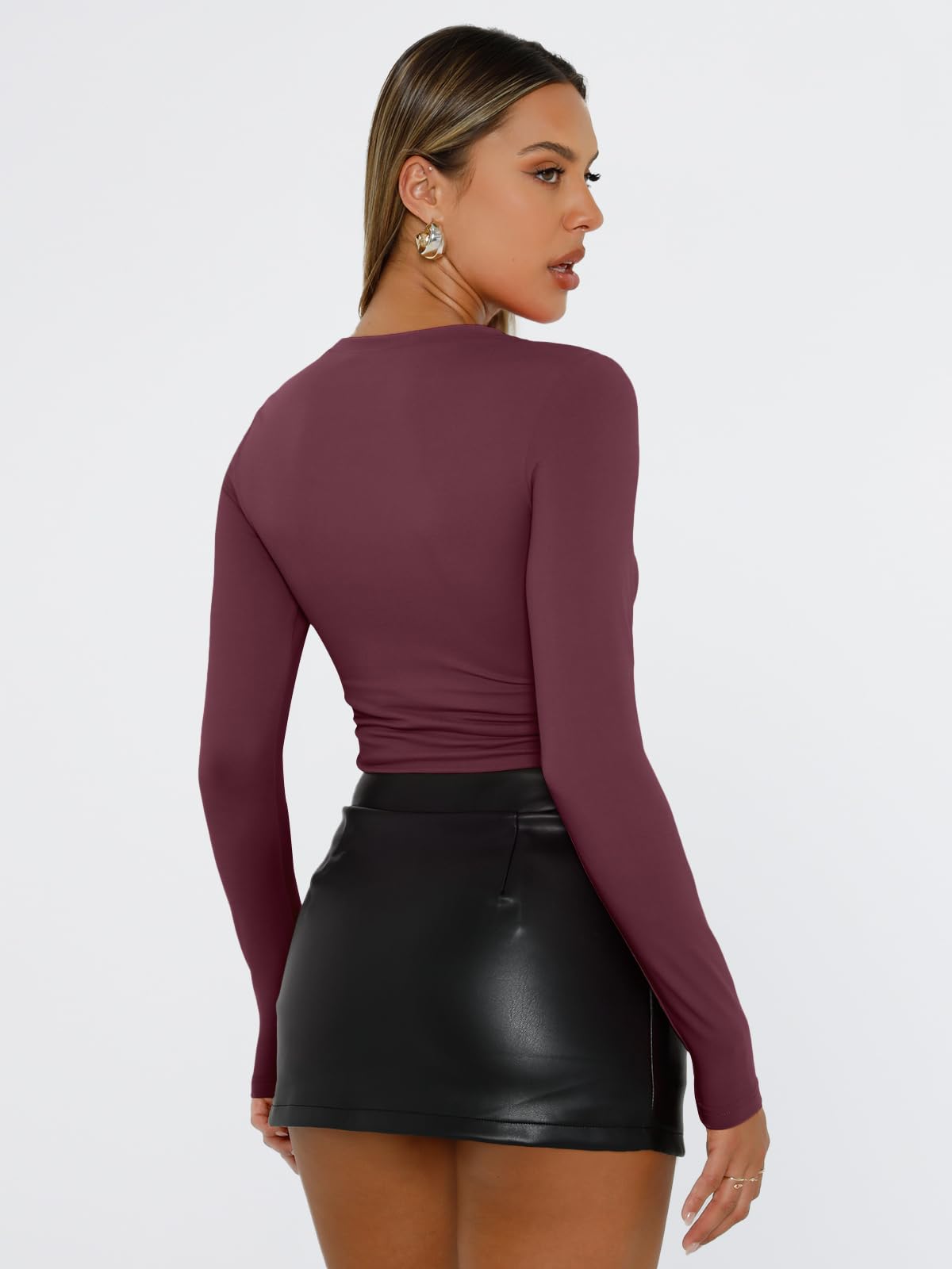 Design: Cropped and stretch fitted style,crew neck, tight underscrubs layer,you can wear it regularly or fold it up like a crop top,cute,slim fit,casual y2k style fashion