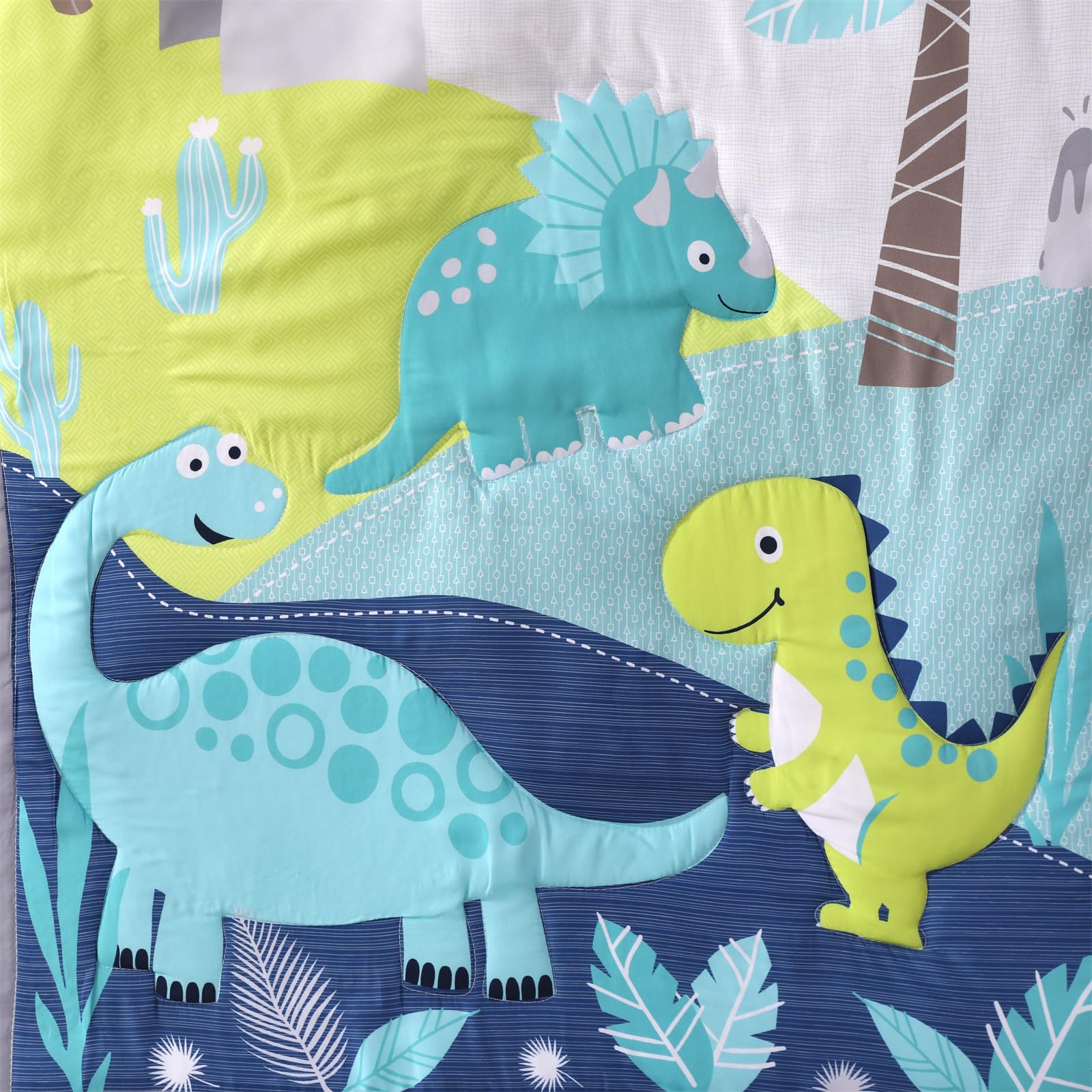 Dinosaur Theme: The baby boy crib bedding set features dinosaurs in blue. It creates a dreamy bedroom, bringing more color and warmth to life. You will find your baby getting a restful sleep
