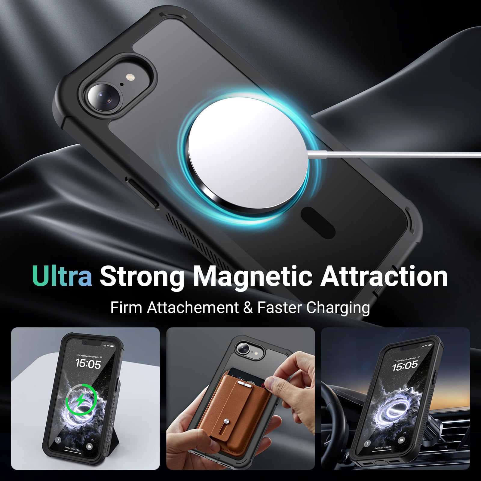 [Magnetic Craft] The built-in magnetic ring can strengthen the magnetic absorption, empowering the case to be compatible with wireless charger, magnetic car mount, magnetic battery bank, magnetic wallet, and most MagSafe accessories. The perfectly aligned magnets enable wireless charging faster and safer than ever. Wireless charge on with the case on.