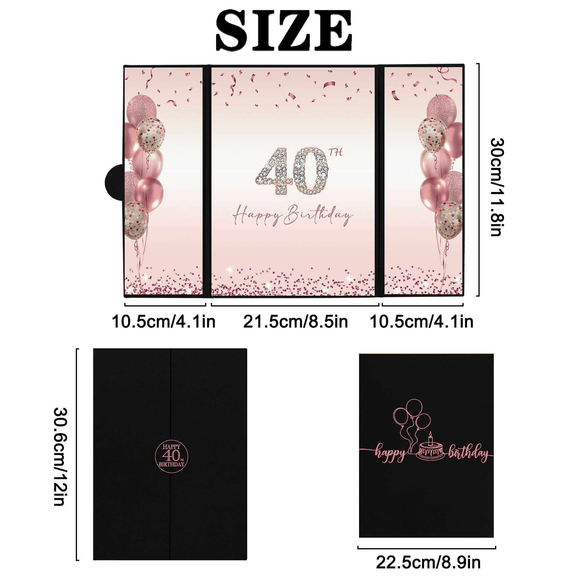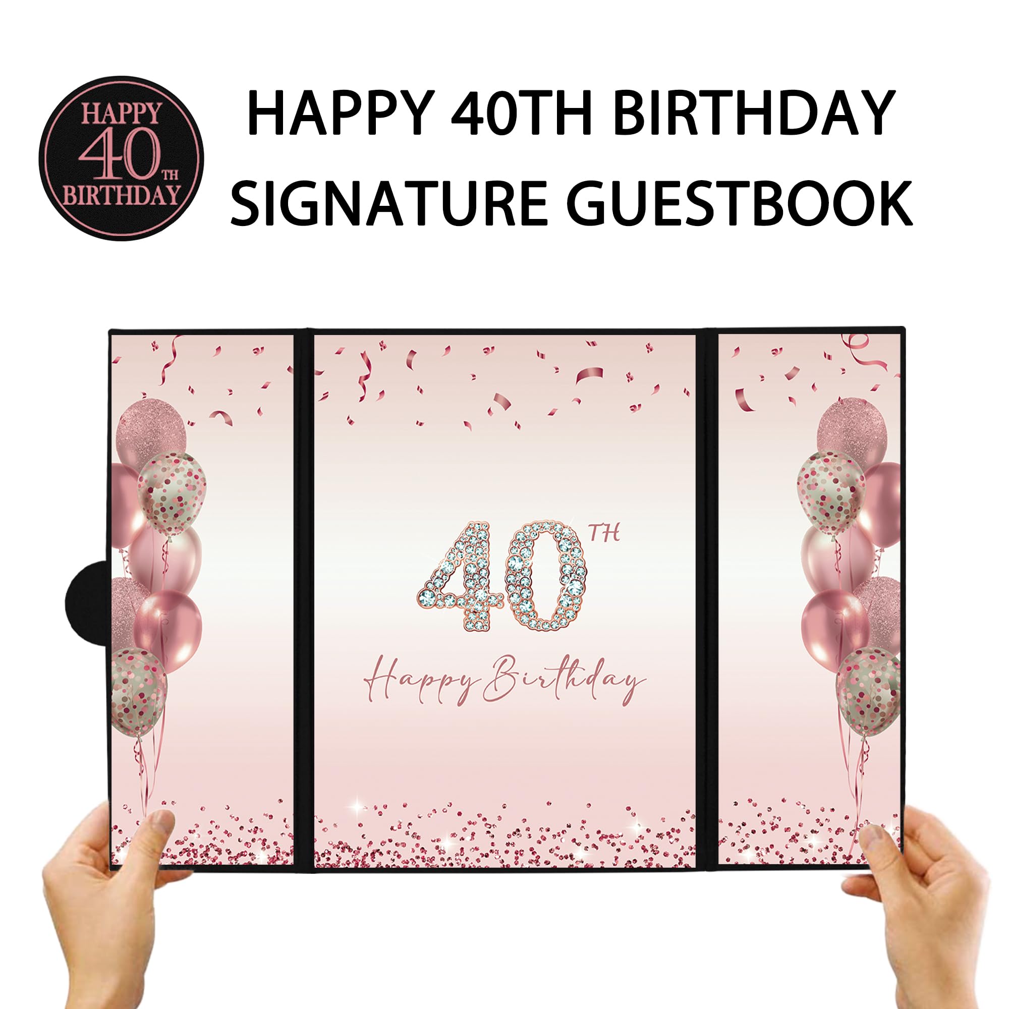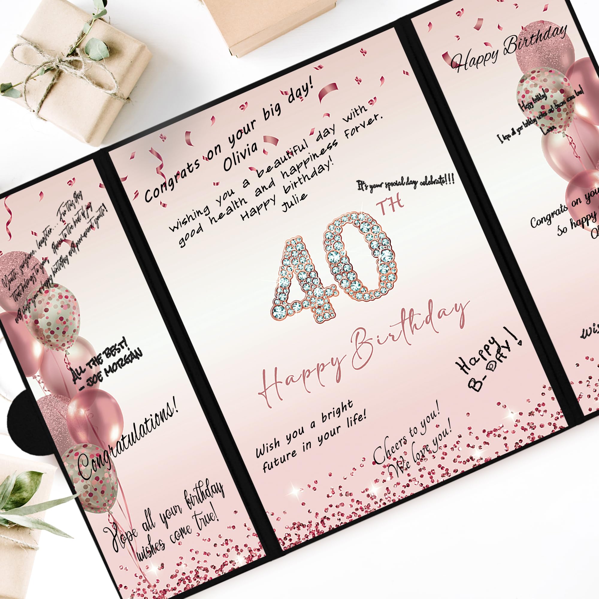 【Perfect Size】 - The cover of Happy 40th Birthday signature sign is approx. 45.6 x 30.6 cm/ 18 x 12inches; the left and right inner page is approx. 10.5 x 30cm/ 4.1 x 11.8inches; the middle inner page: approx. 21.5 x 30 cm/ 8.5 x 11.8inches. It is a fun party decoration idea for the 40th Birthday. You can make your keepsake unique and keep them endlessly.