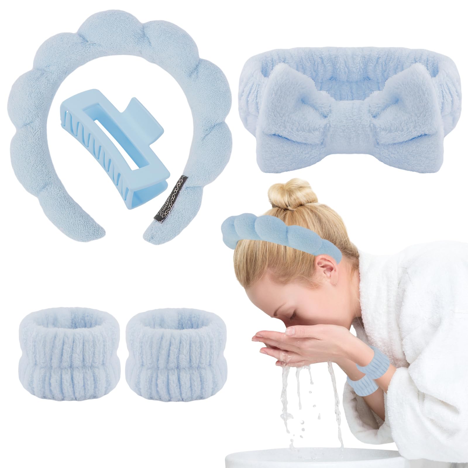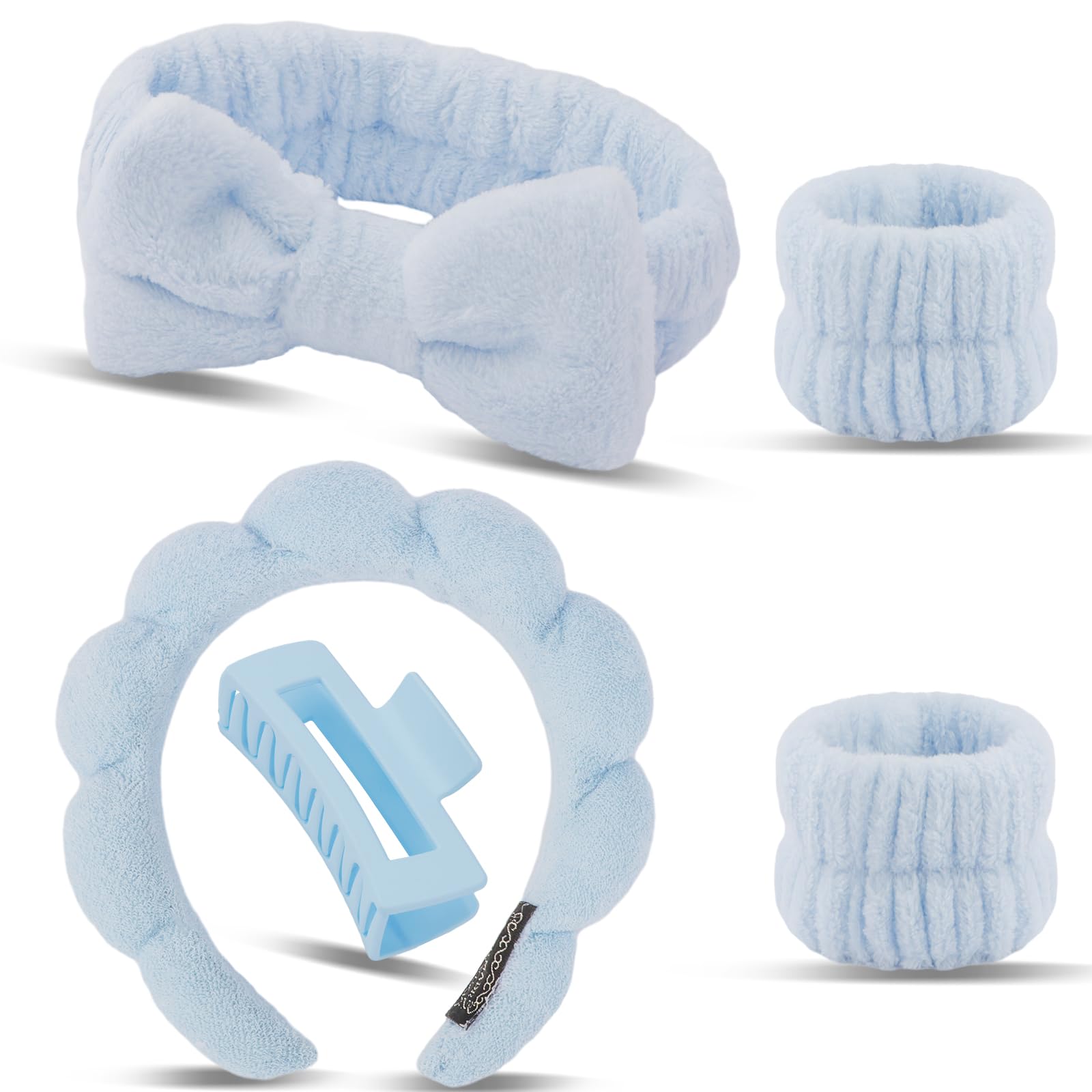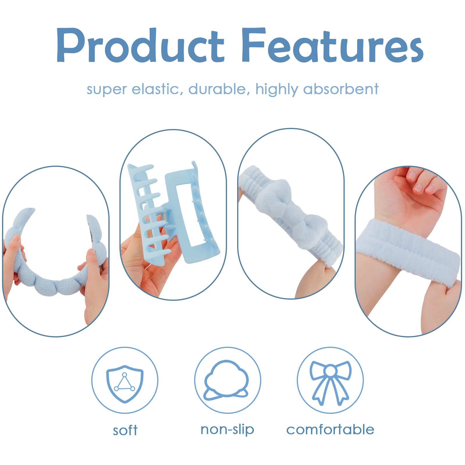 ✨PRACTICAL COMBINATION: There are two different styles of makeup headbands to keep your hair away from your face, and wristbands to keep your sleeves from getting wet during face washing.Hair Clip can hold your thick or thin hair for face washing or daily use.
