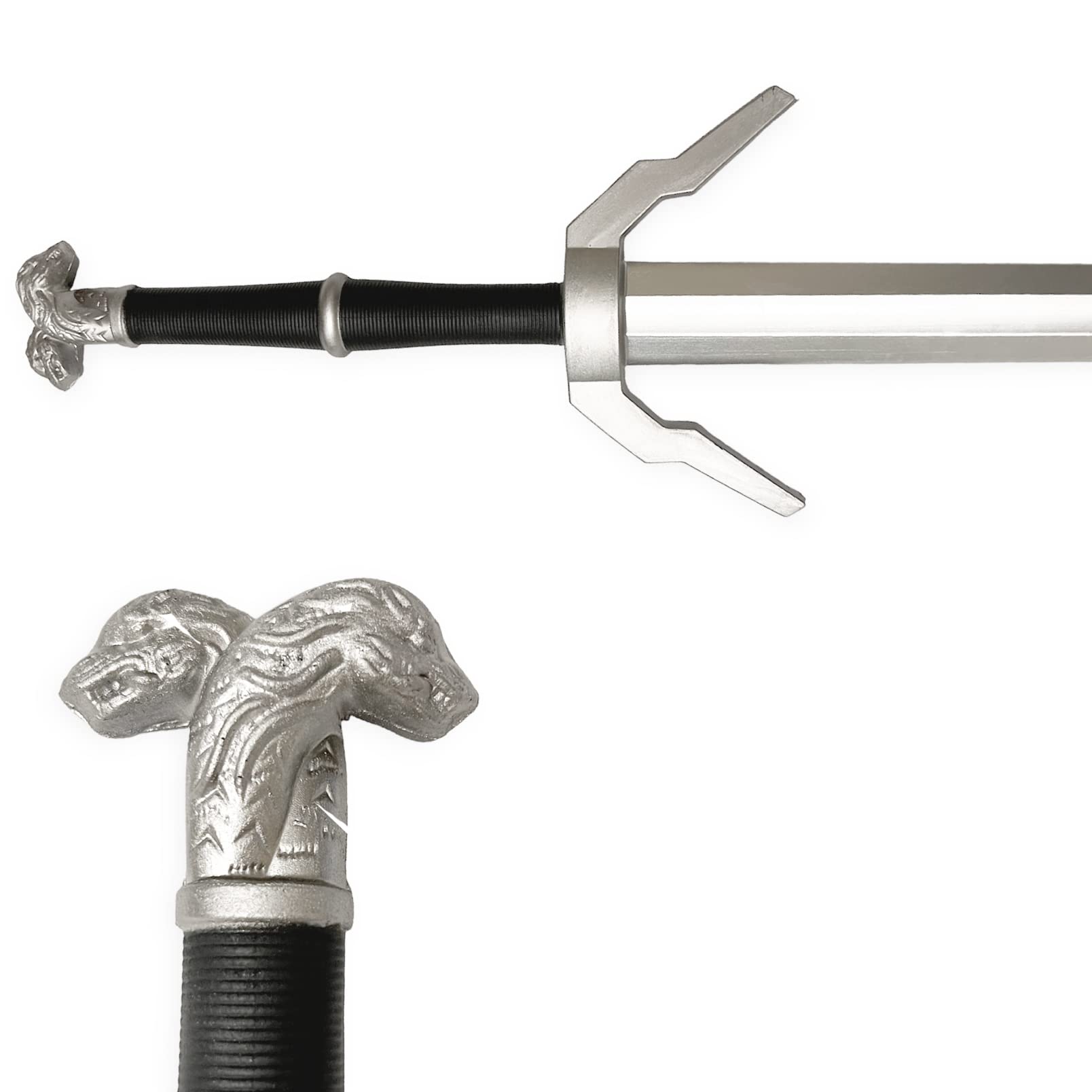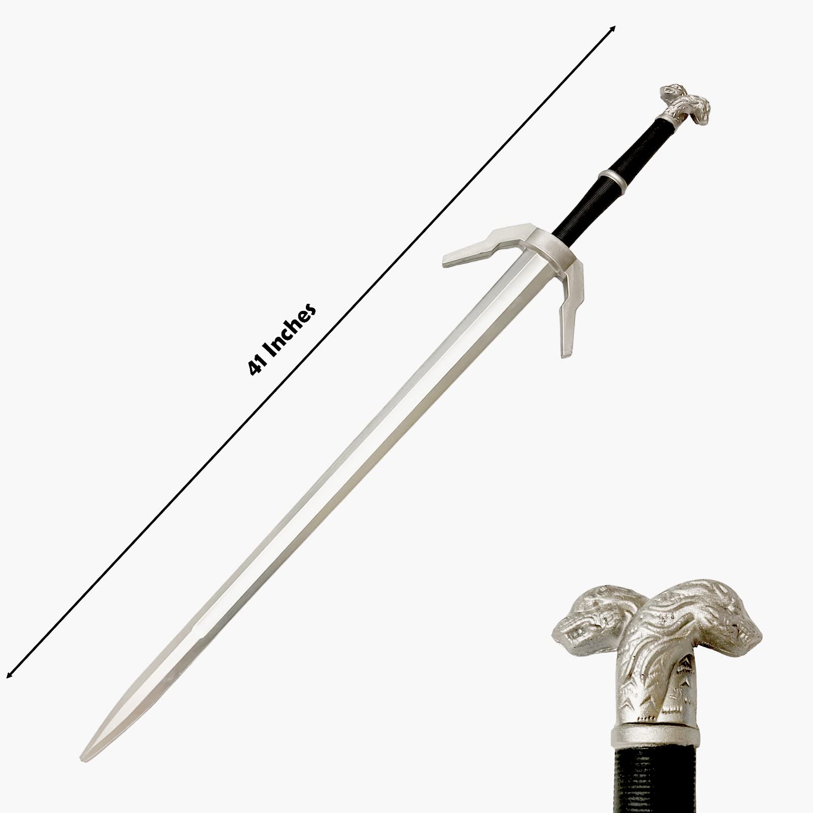 Overall Length: 41” Blade Length: 29” Hilt Length: 10.5” Weight: 1 lb Silver-colored and made of high-density foam with a plastic core, and looks sharp enough for monster slaying Also Silver-colored, and decorated with show-authentic pieces Highly detailed and safe for conventions, it perfectly completes your cosplay All of our swords are made of the finest materials, and are packaged securely in our own warehouse