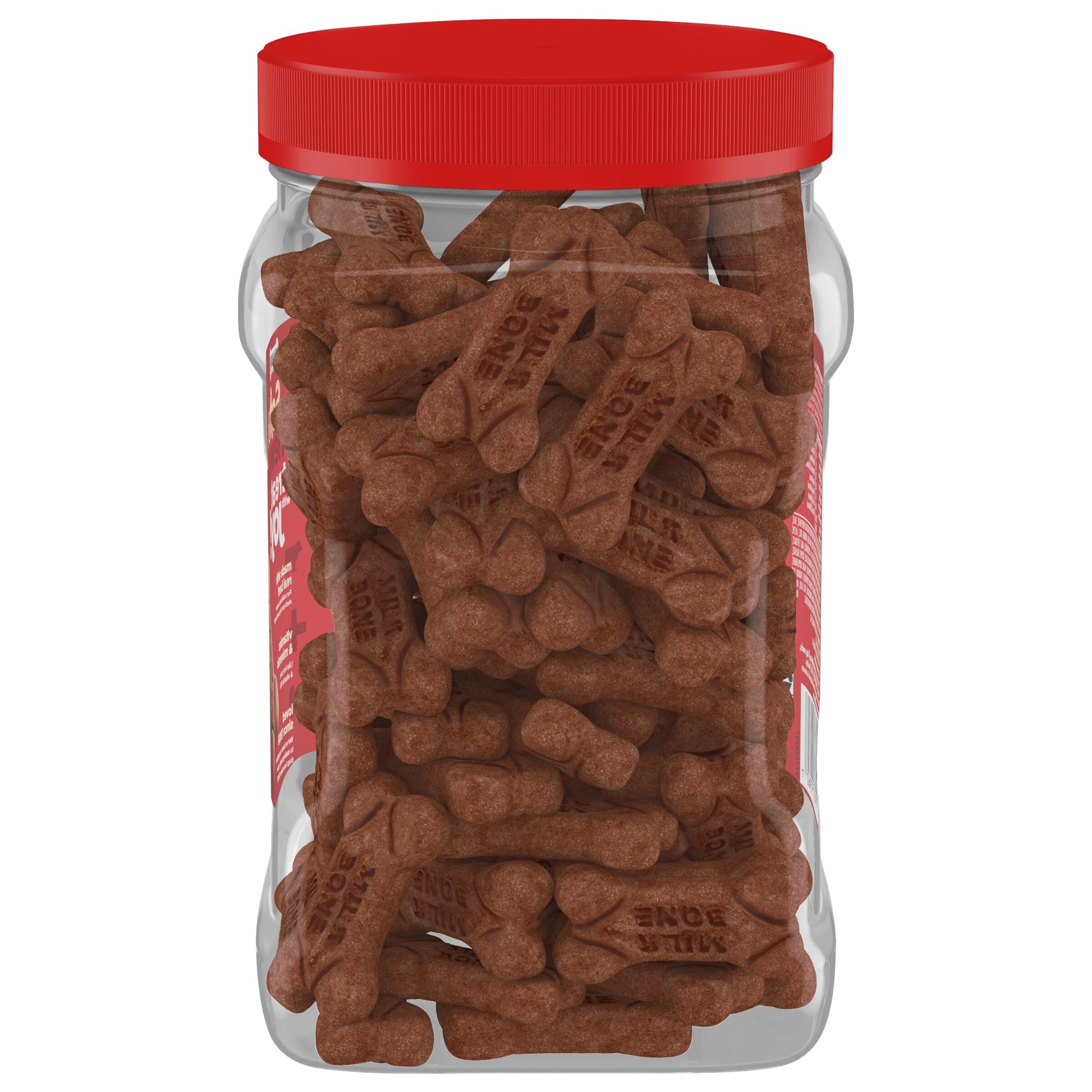 Contains one (1) 25-ounce container of Milk-Bone Soft & Chewy Beef & Filet Mignon Recipe With Chuck Roast dog treats