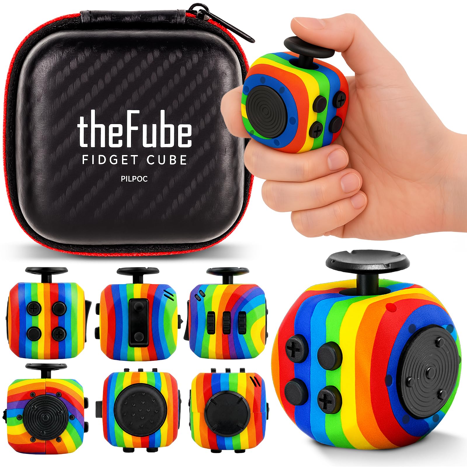 REDUCE STRESS, ANXIETY, PERFECT FOR ADHD: The PILPOC theFube Fidget Cube desk toy has been designed to help people of all ages relieve stress and anxiety. It helps students focus, it is relaxing for people with ADHD, it helps seniors improve manual dexterity, and it even helps quitting smoking or biting the nails.