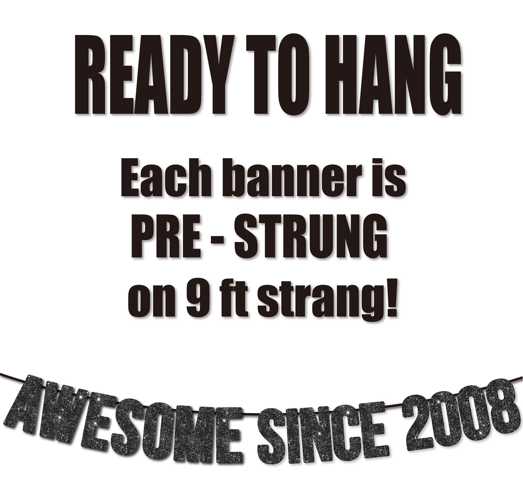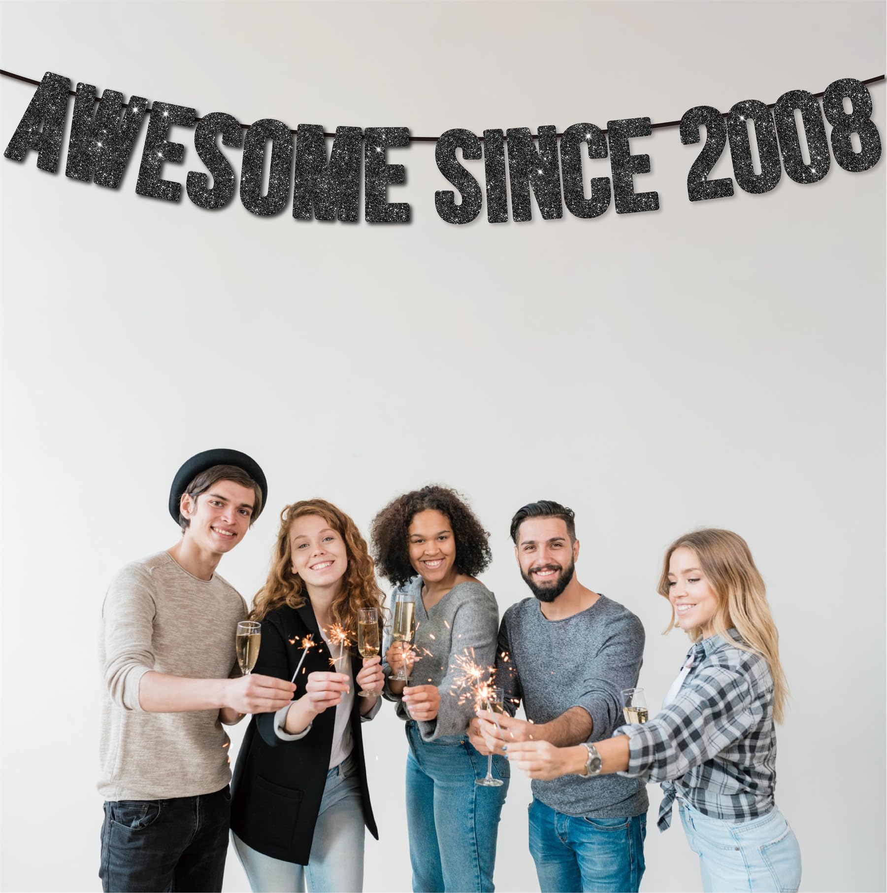 Awesome Since 2008 Banner for 17th Birthday Party Decoration,Happy 17th Men Women Birthday Party Banner,Handmade - Black