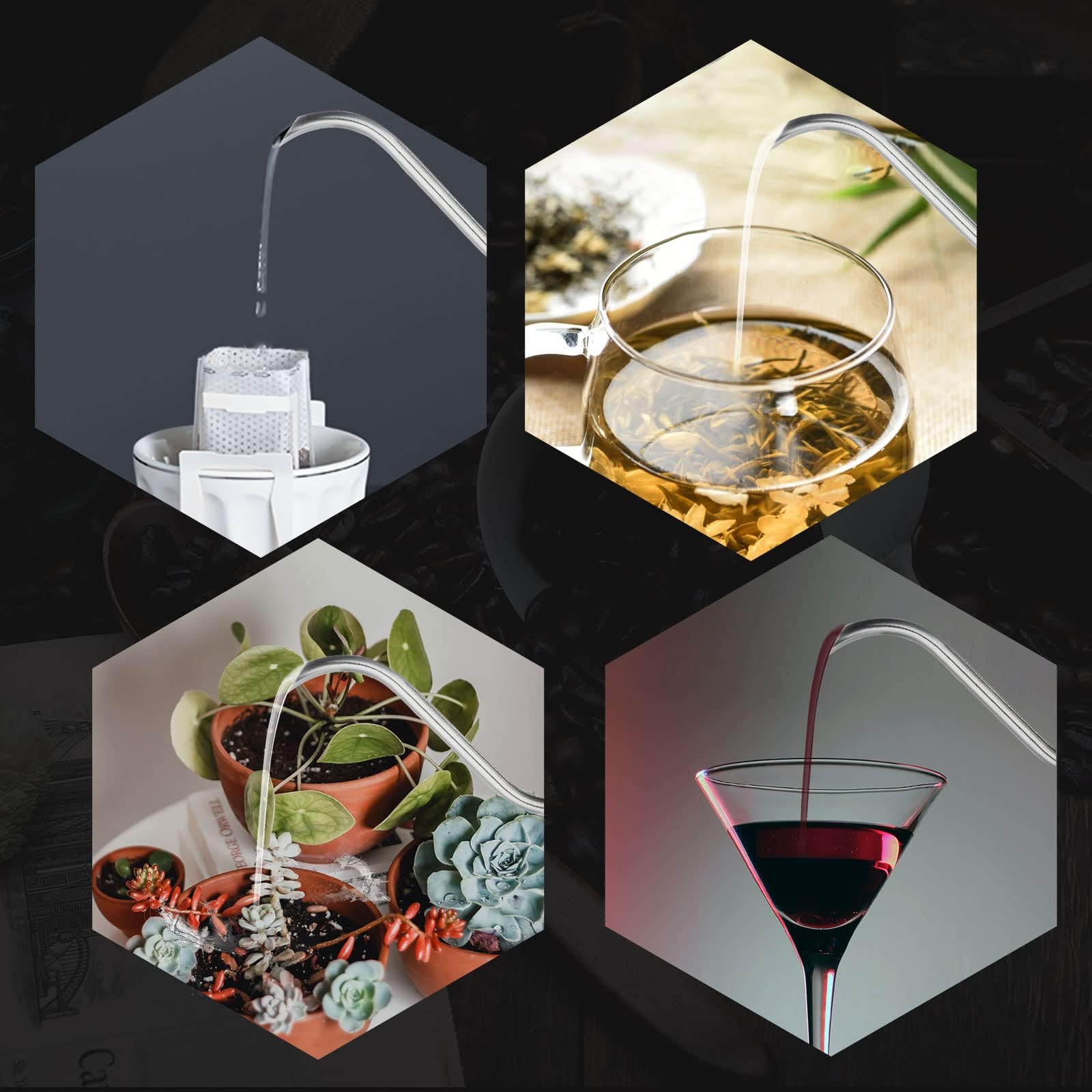 【Multiple uses】This pour over kettle can be used not only for brewing coffee, but also for brewing tea, pouring wine, watering plants, adding oil to oil lamps, etc.This coffee kettle is compact and easy to carry, so you can enjoy coffee while camping outdoors.You can use it at home, in the office, outdoors, just enjoy your leisure time with this small pot.
