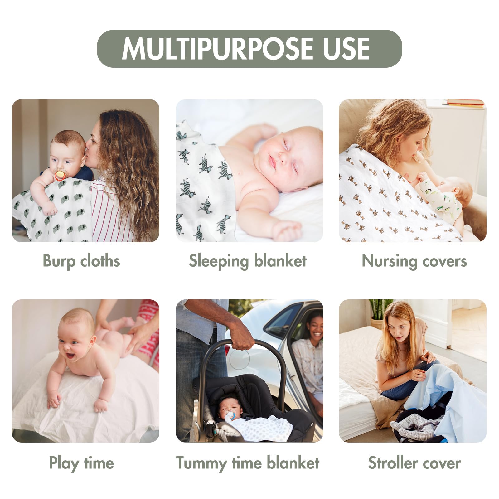Four Seasons General & Versatile: Due to their practical size (70 x 70 cm, SIX-pack), these baby blankets can be used for a variety of purposes, such as a receiving blanket, cuddle blanket, nursing cover, sunscreen for strollers, burp cloth, car seat cover, play mat, changing pad, mini crib sheet, cleaning the face, catching spit-up, sunshade cover, picnic pad, or tummy time blanket. Fast-drying and ready for the next use, they provide even more day-to-day versatility for parents