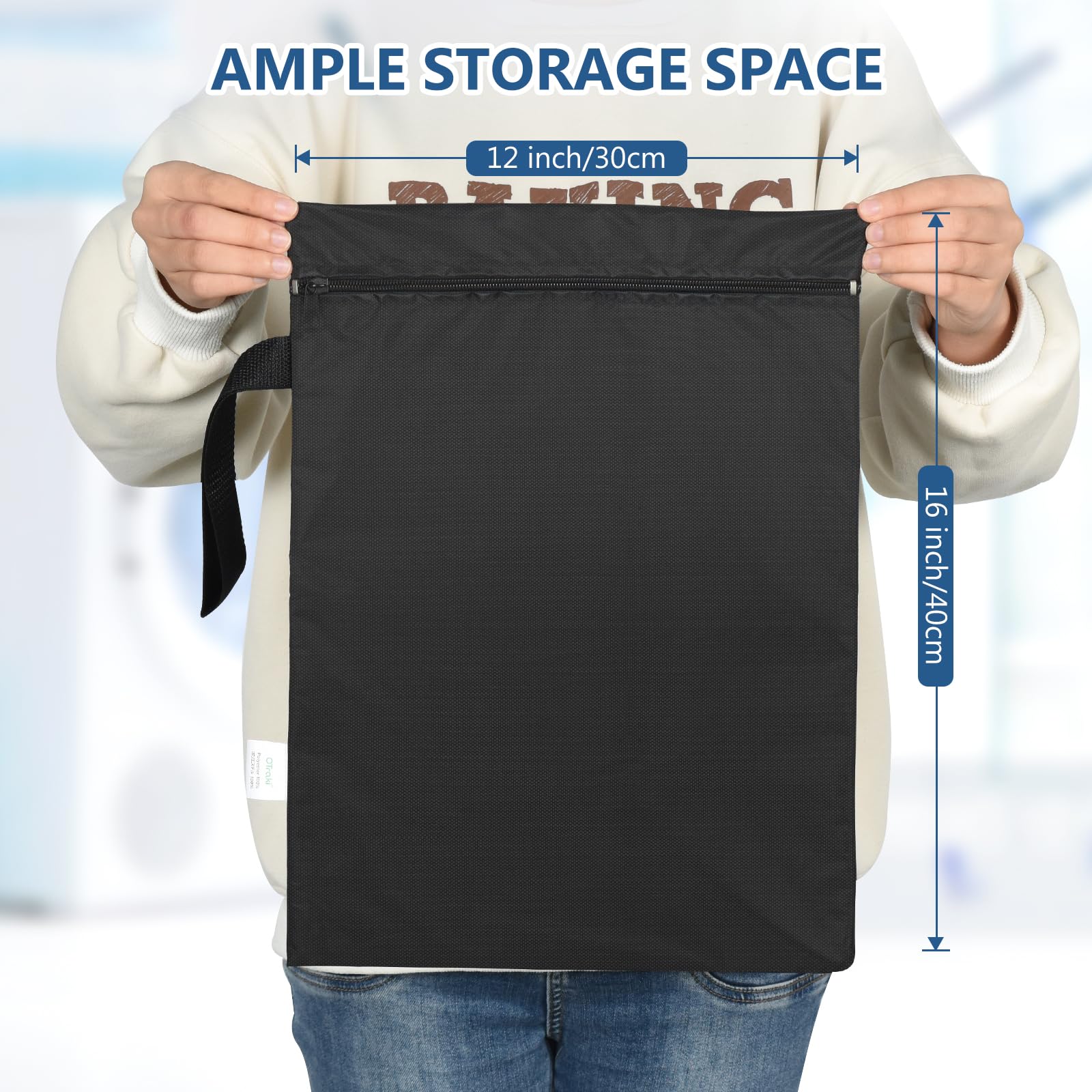 【Enough Space】You will get 2pcs 12 x 16 inch / 30 x 40 cm wet laundry bags (black and grey). The ample space is enough to accommodate a daily change of wet clothes, diapers or bathing suits, making it ideal for everyday use.