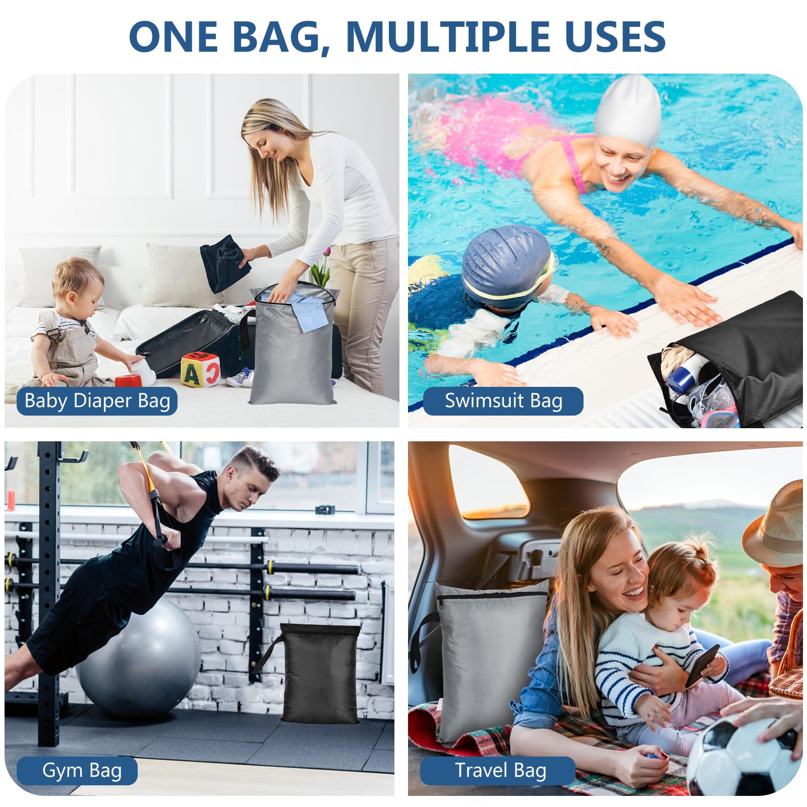 【Multifunctional Bags】These wet dry bags can be used as baby diaper bags, dirty clothes bags, swimsuit bags, bathing suit bags, travel bags, gym bags, storage bags, cosmetic bags, handbags, wash bags, organizer bags, even as picnic bags. Compact and foldable design is great for use when go outside, go travel or daily organize.