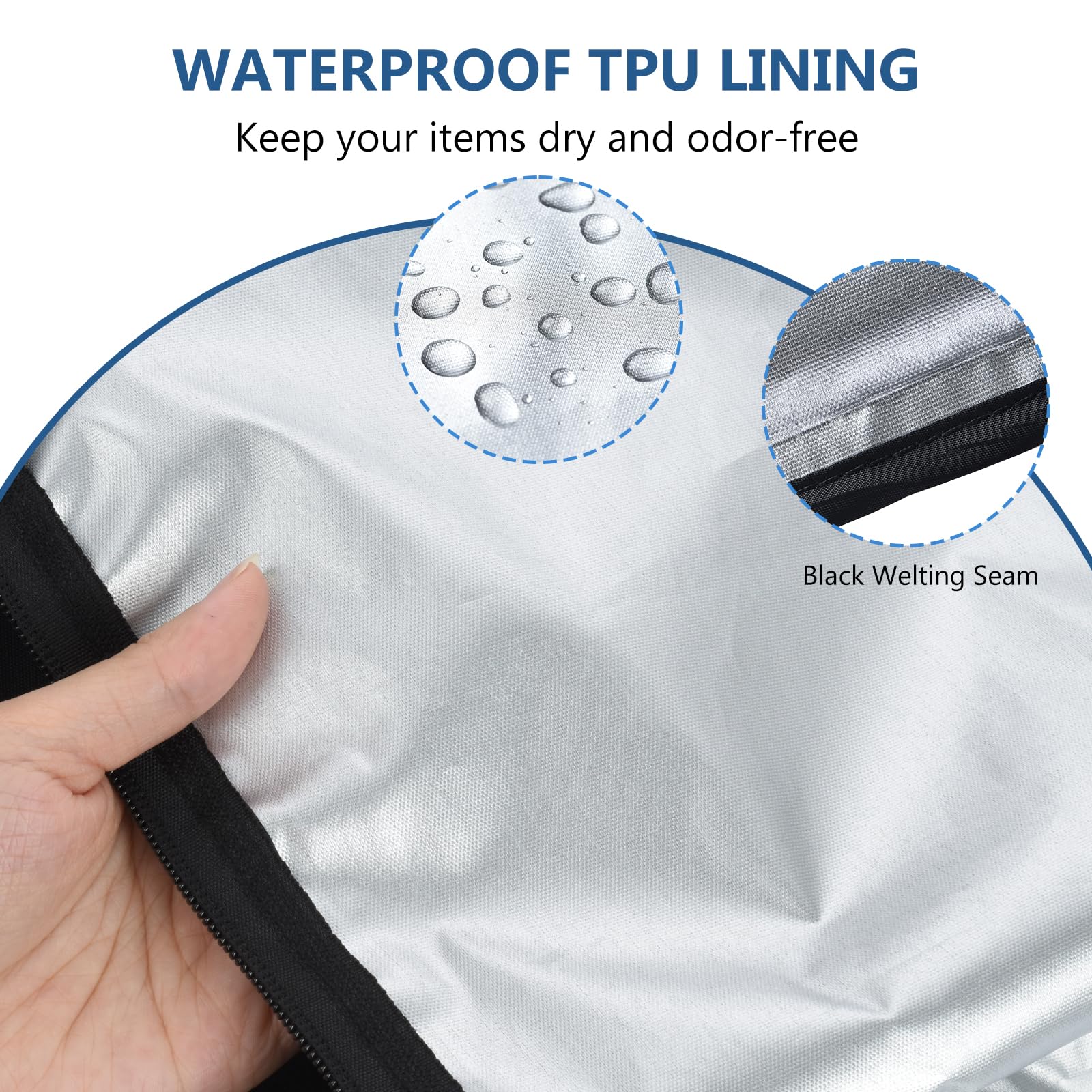 【Water Resistant Material】Our baby wet bag is made of waterproof Oxford cloth with a waterproof TPU coating embedded in the inner lining and a black welt at the seam to enhance water resistance. You can toss your damp clothes in the bag without worrying about leaks or odors. Plus, the waterproof material makes it easy to wipe clean and reuseable.