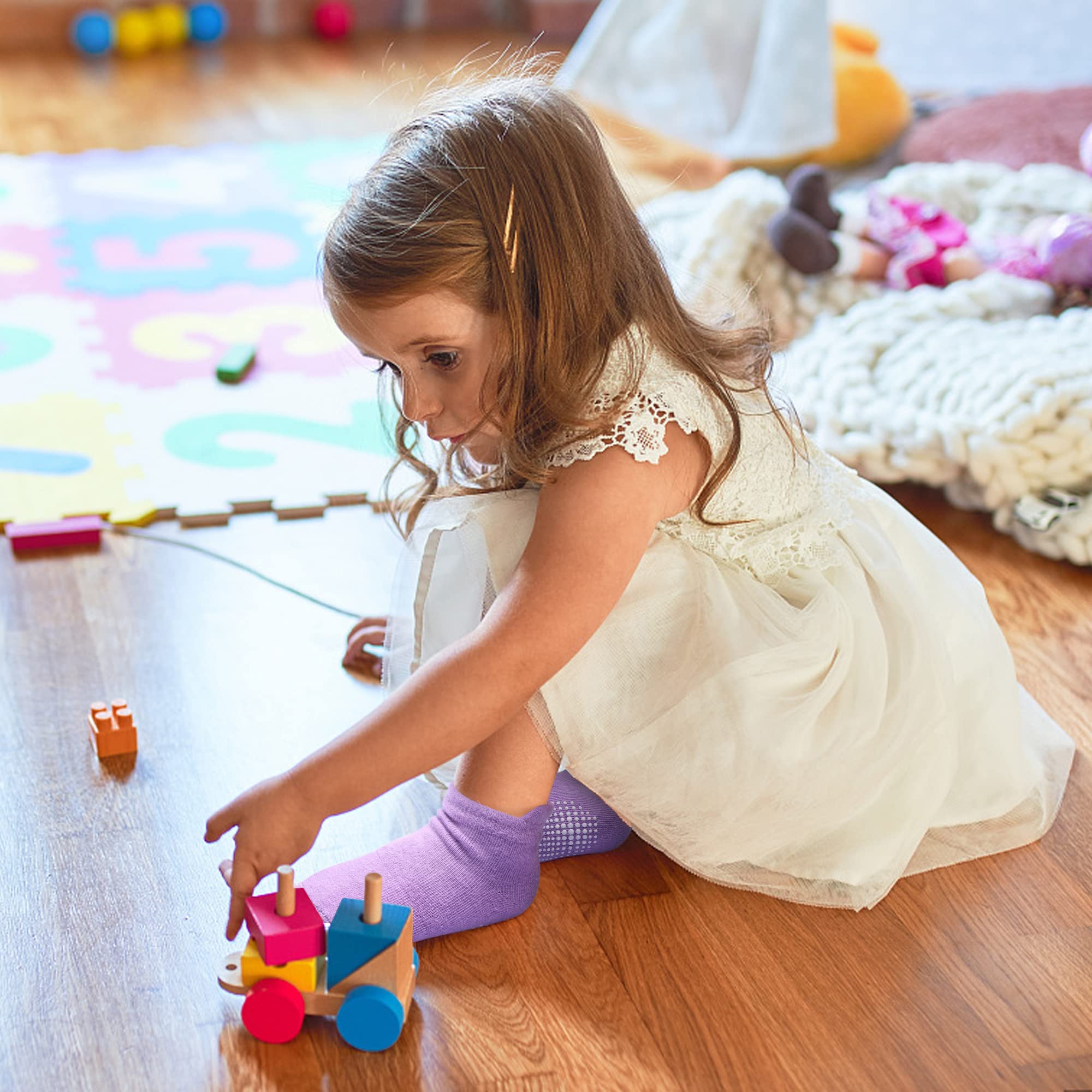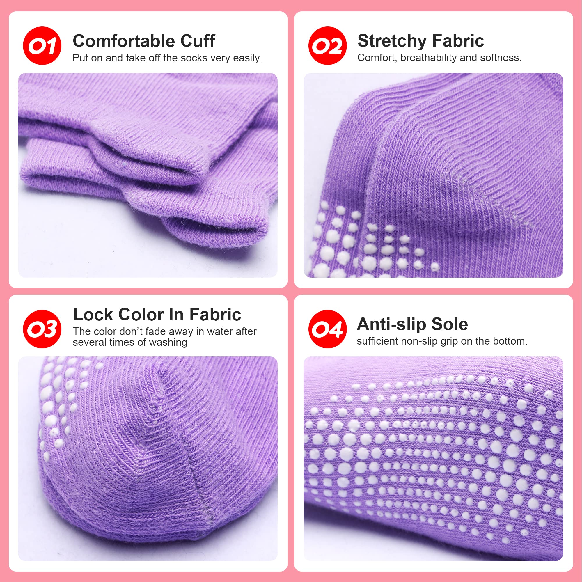 ANTI-SLIP GIRLS SOCKS-- These grip socks for girls with traction grips covers the whole sole from heel to toe. The gripper dots are smaller on the edges, bigger ones in the middle and evenly distributes maximize traction and minimize the risk of any slipping accidents.