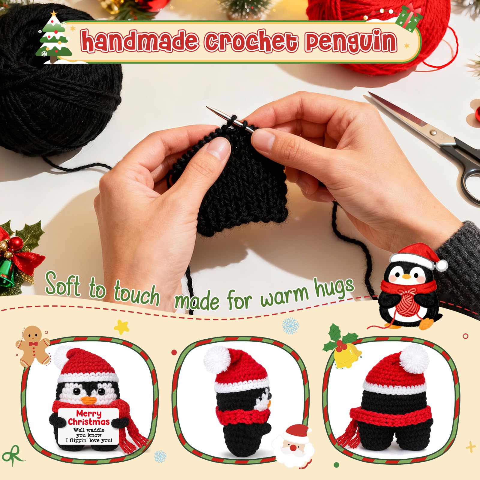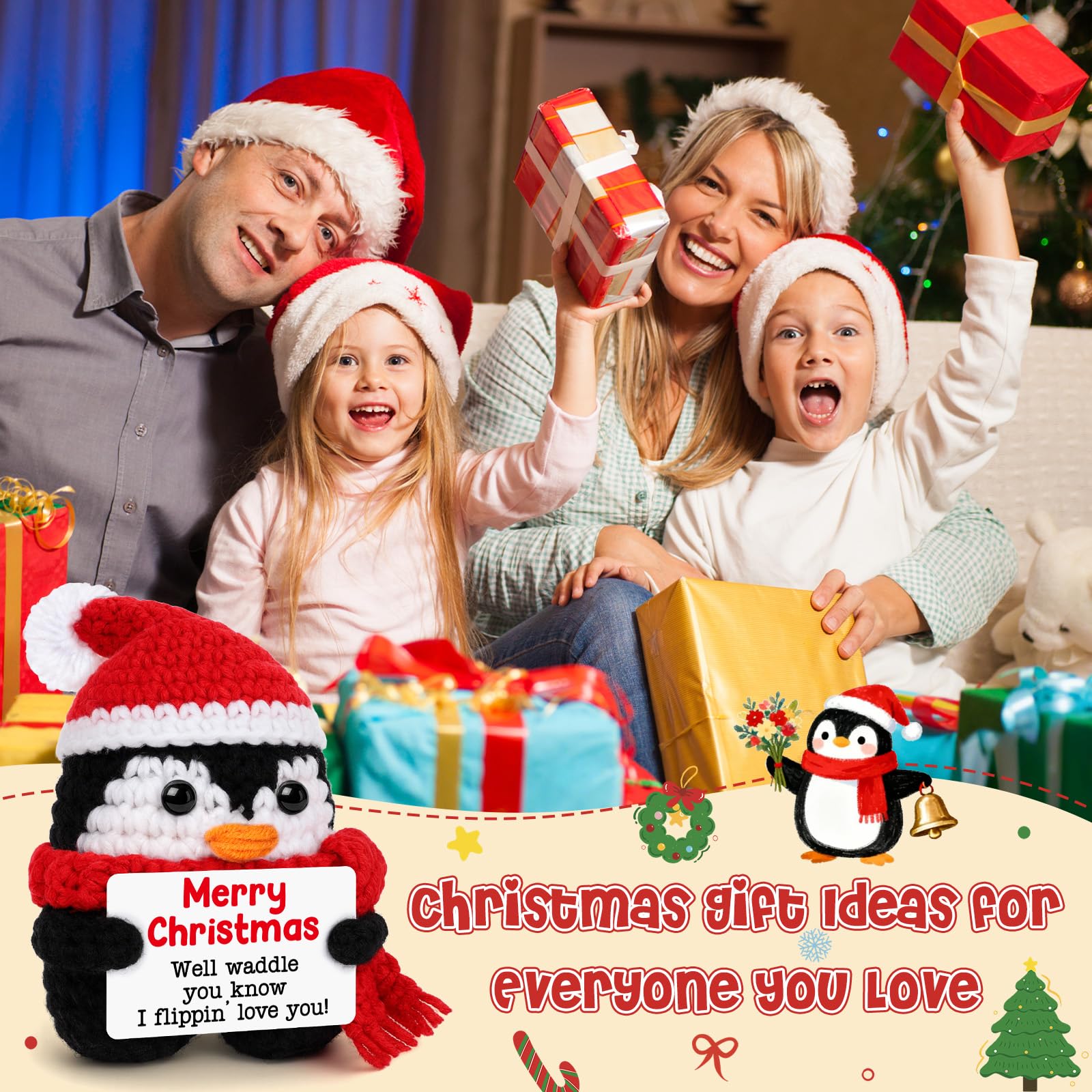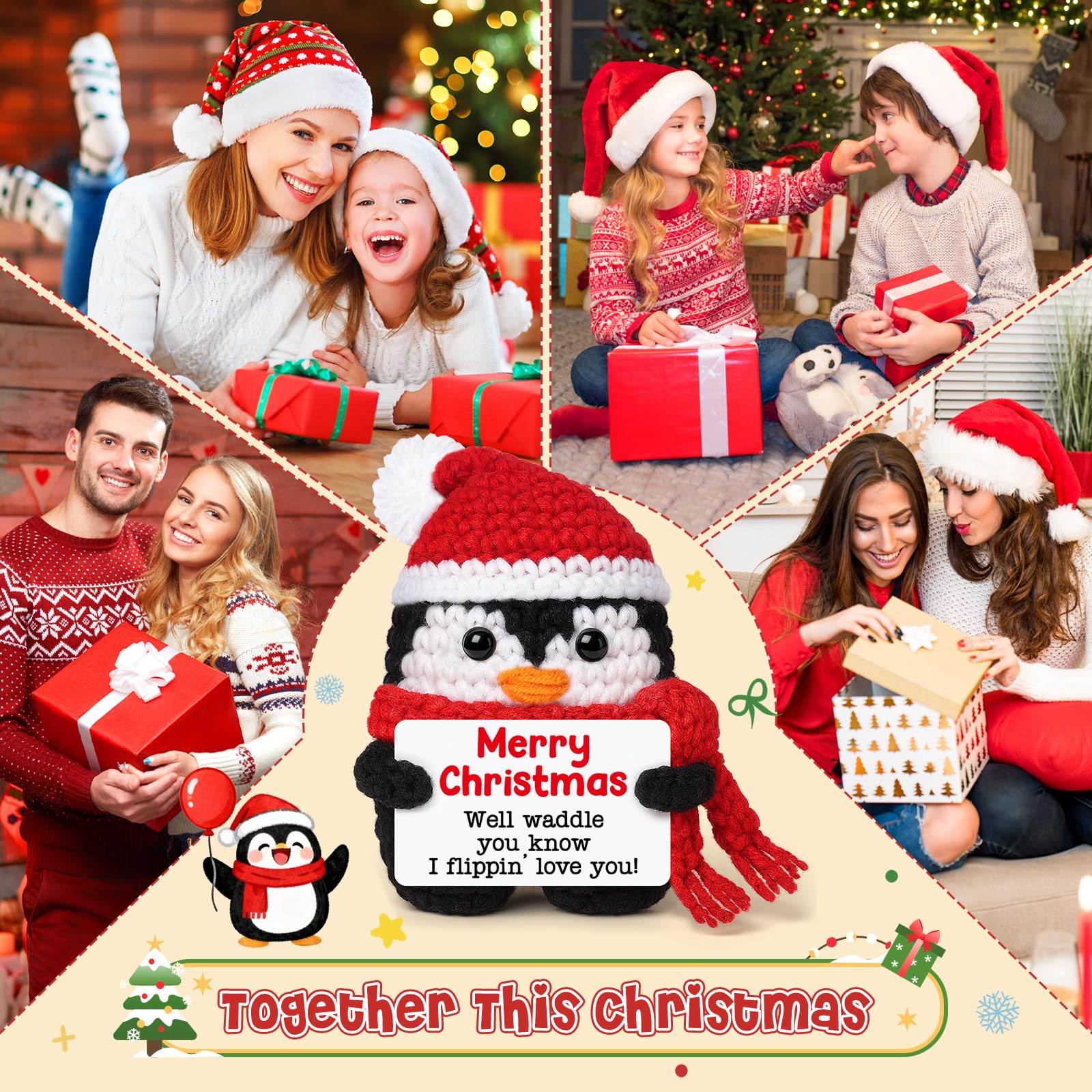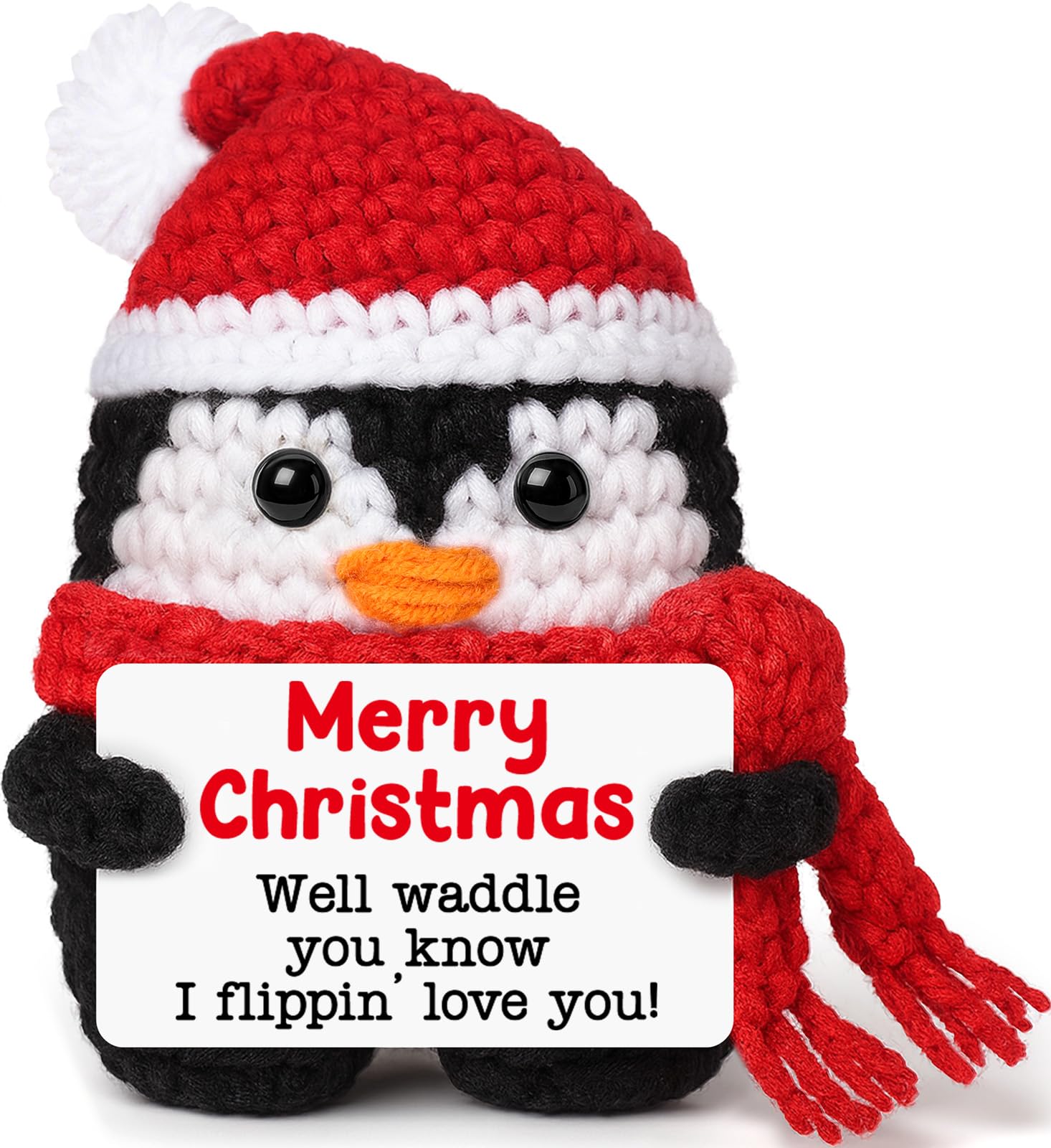 Mini Funny Positive Crochet Penguin Xmas Decorations, Christmas Gifts for Women Men, Anniversary Romantic Gifts for Women Men Wife Husband Boyfriend Girlfriend, Holiday Gift Emotional Penguin Support