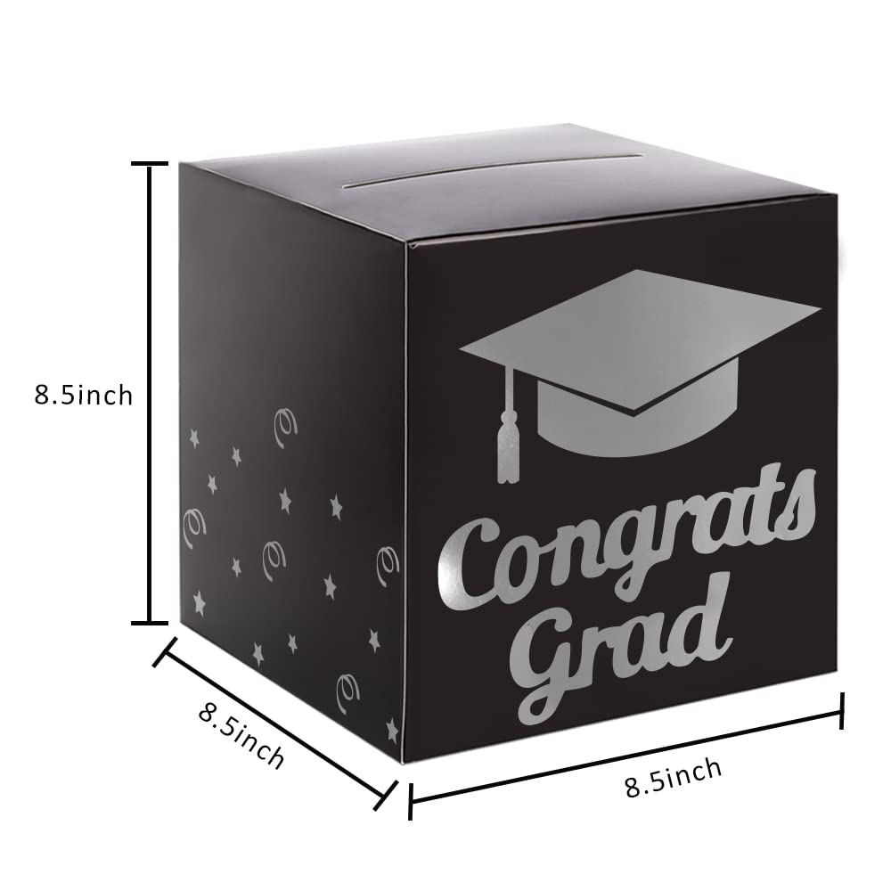 Dimensions: Our graduation card box holder measures 8.5 x 8.5 x 8.5 inches, the top slot measures 5.9 x 0.2 inches; It can carry lots of cards