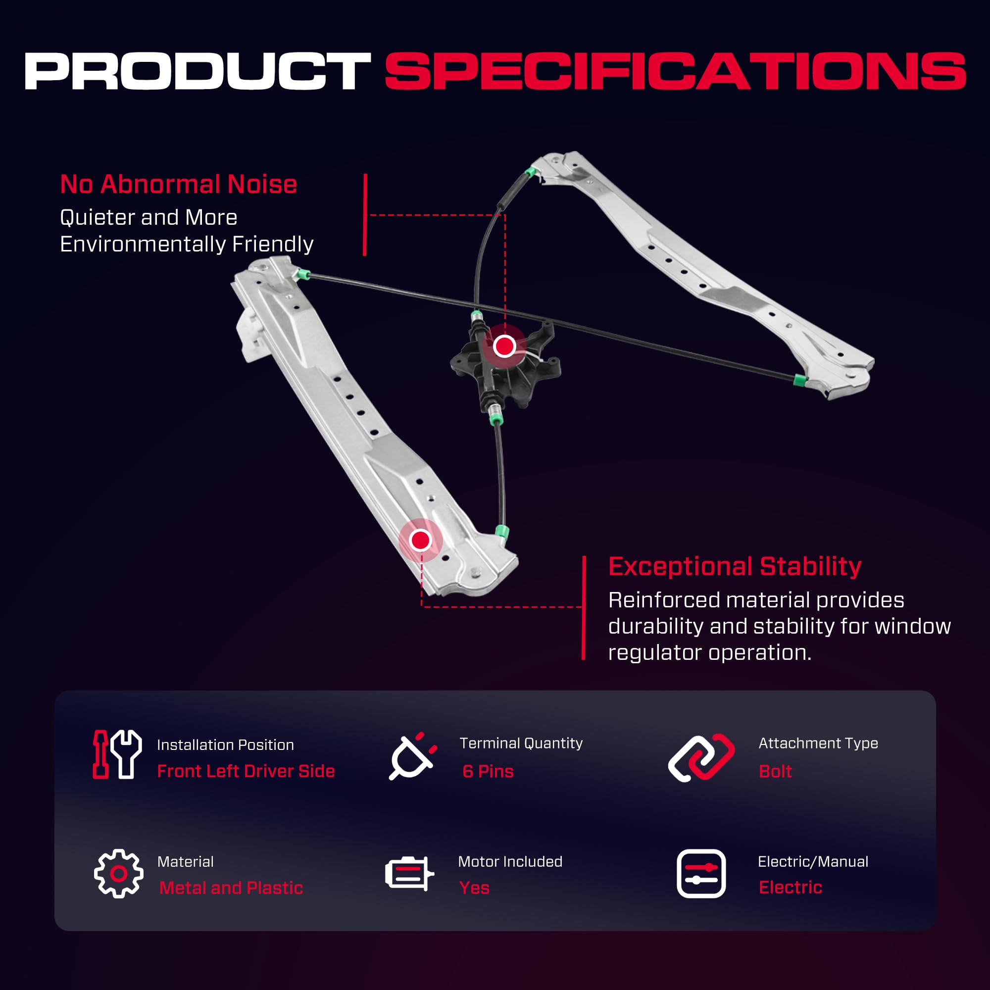 Easy Installation: Precise mounting points and easy installation of the window regulator assembly require no special tools for easy operation and installation