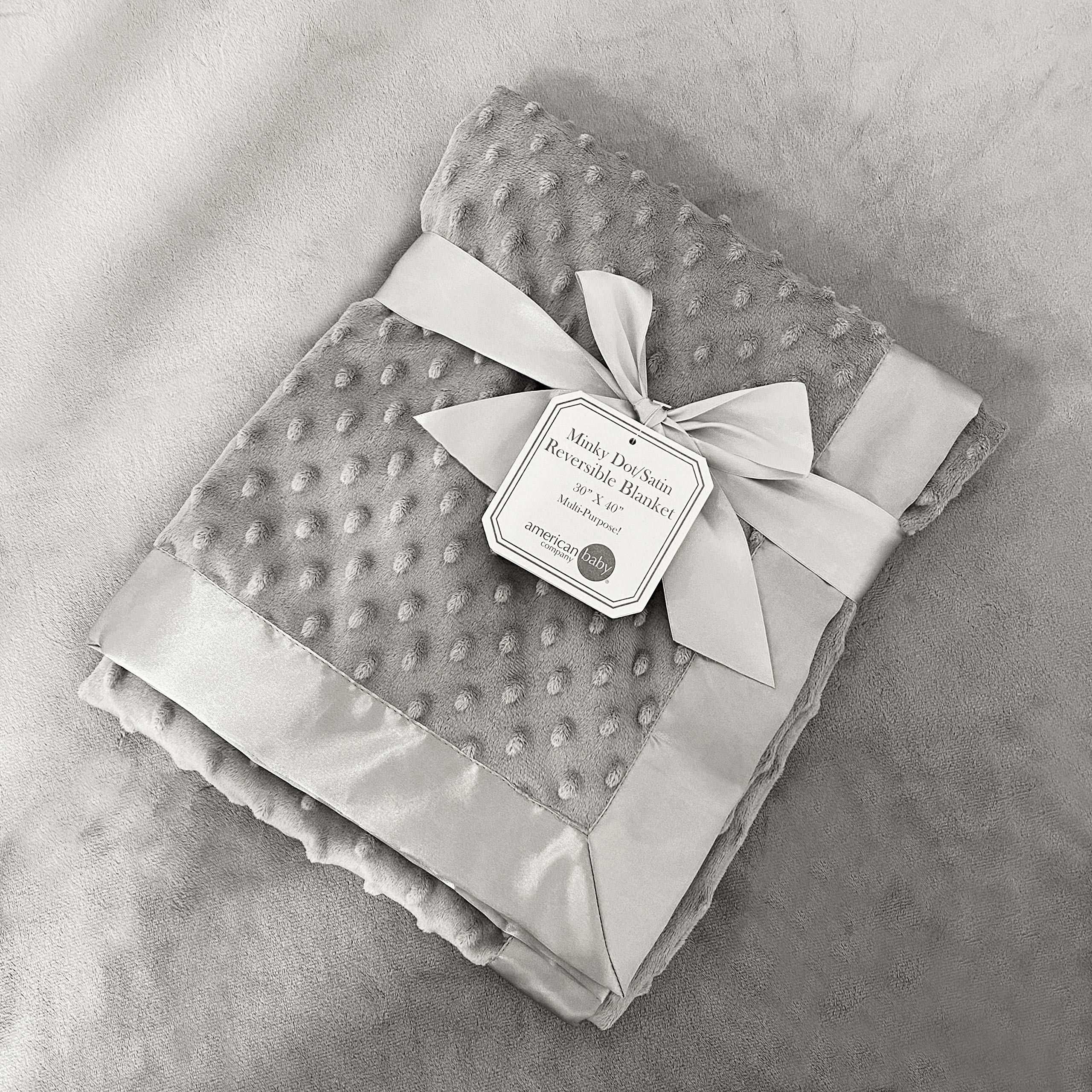 This great minky Dot chenille blanket is ultra soft and cuddly for your baby helps baby feel safe and comfortable. Perfect gift for BABY shower and perfect for today's stylish new moms. Measures 30 in x 40 in. The blanket is velvety soft on one side and smooth satin on the other. Machine wash in cold water and dry on lowest temperature setting.