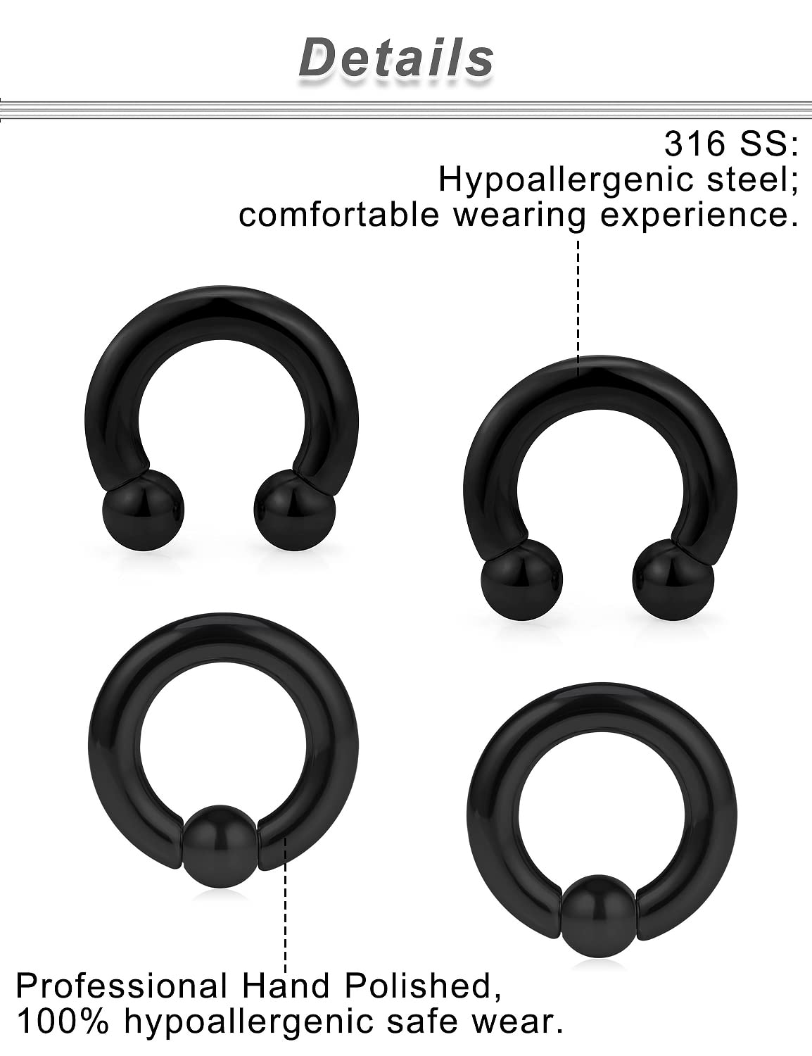 Made of Surgical Grade 316L Stainless Steel, Safe Material, Hypoallergenic, Harmless Your Skin, Super Smooth and Shiny Surface, It's a Healthy Choice for You.