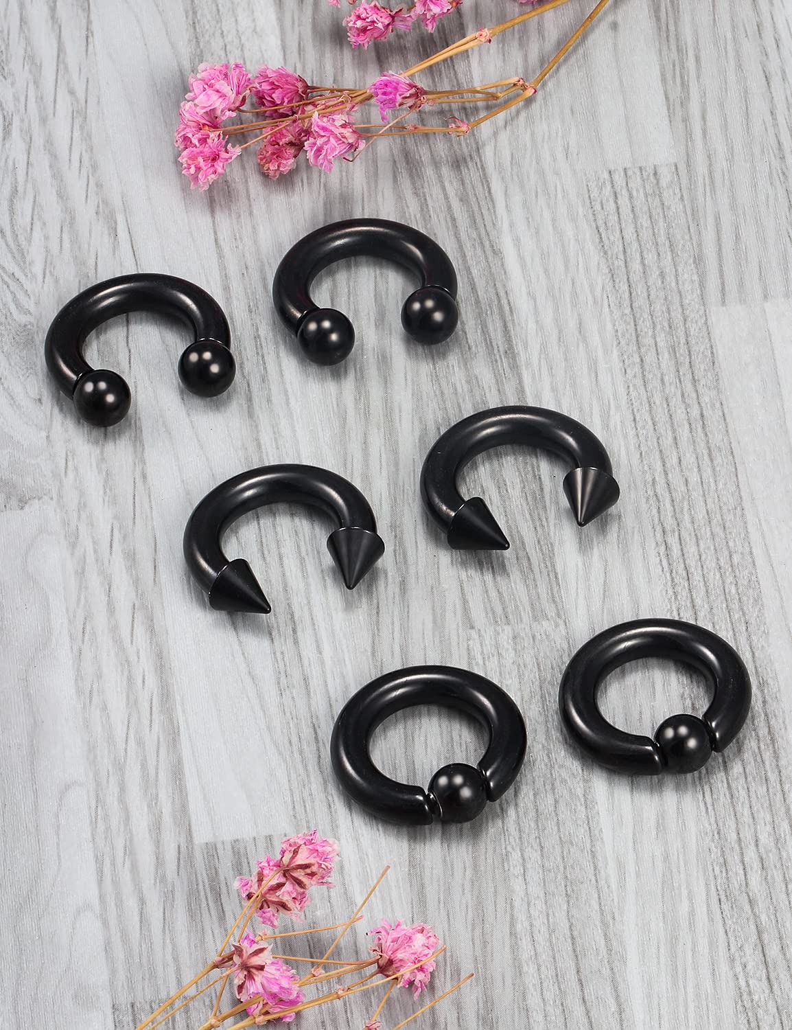One Order Included 6 PCS Septum Rings Have 3 Styles, 1 Pairs Spike Horseshoes Septum Rings,1 Pairs Balls Horseshoes Septum Rings,1 Pairs Captive Bead Septum Rings,Economical Price with Trendy Design Give You a Colorful Day.