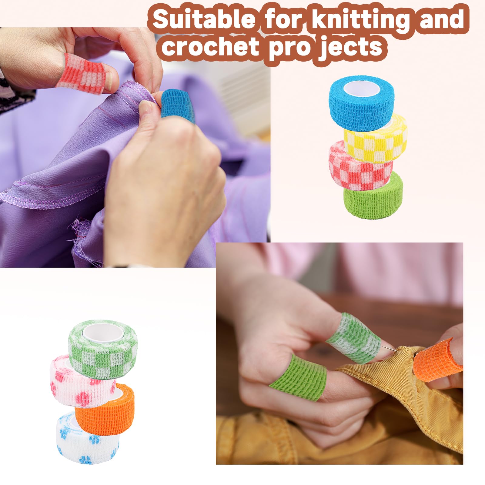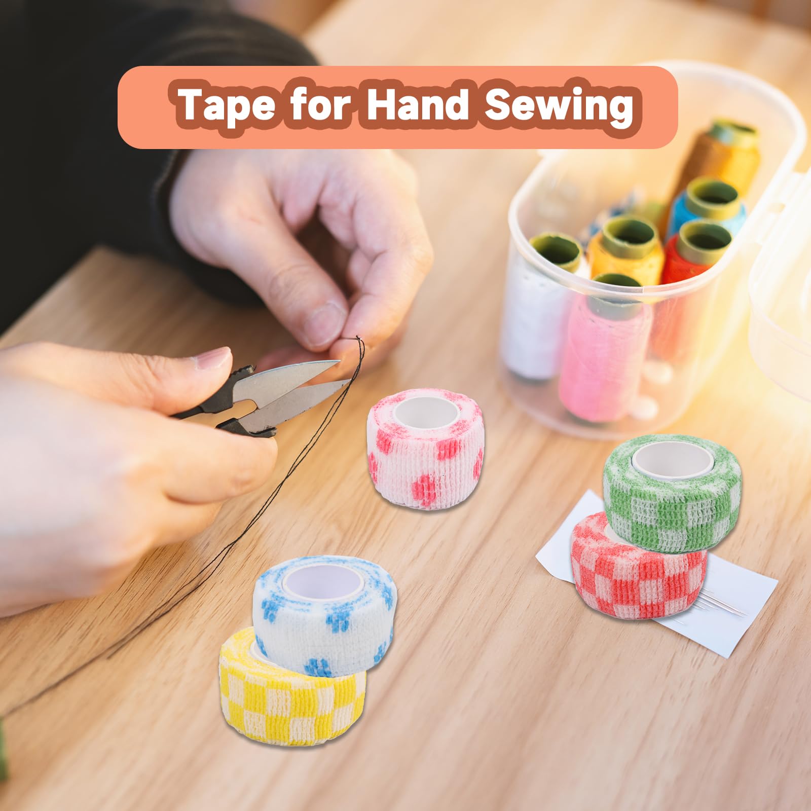 Ultimate Crafting Protection Kit: 8 vibrant rolls of non-woven thimble tape for hand sewing! These latex-free finger protectors for sewing mold perfectly to any finger. Self-adhesive design stays secure without residue. Doubles as dog bandage wrap for quick pet first aid. Includes unique paw prints & checkered designs