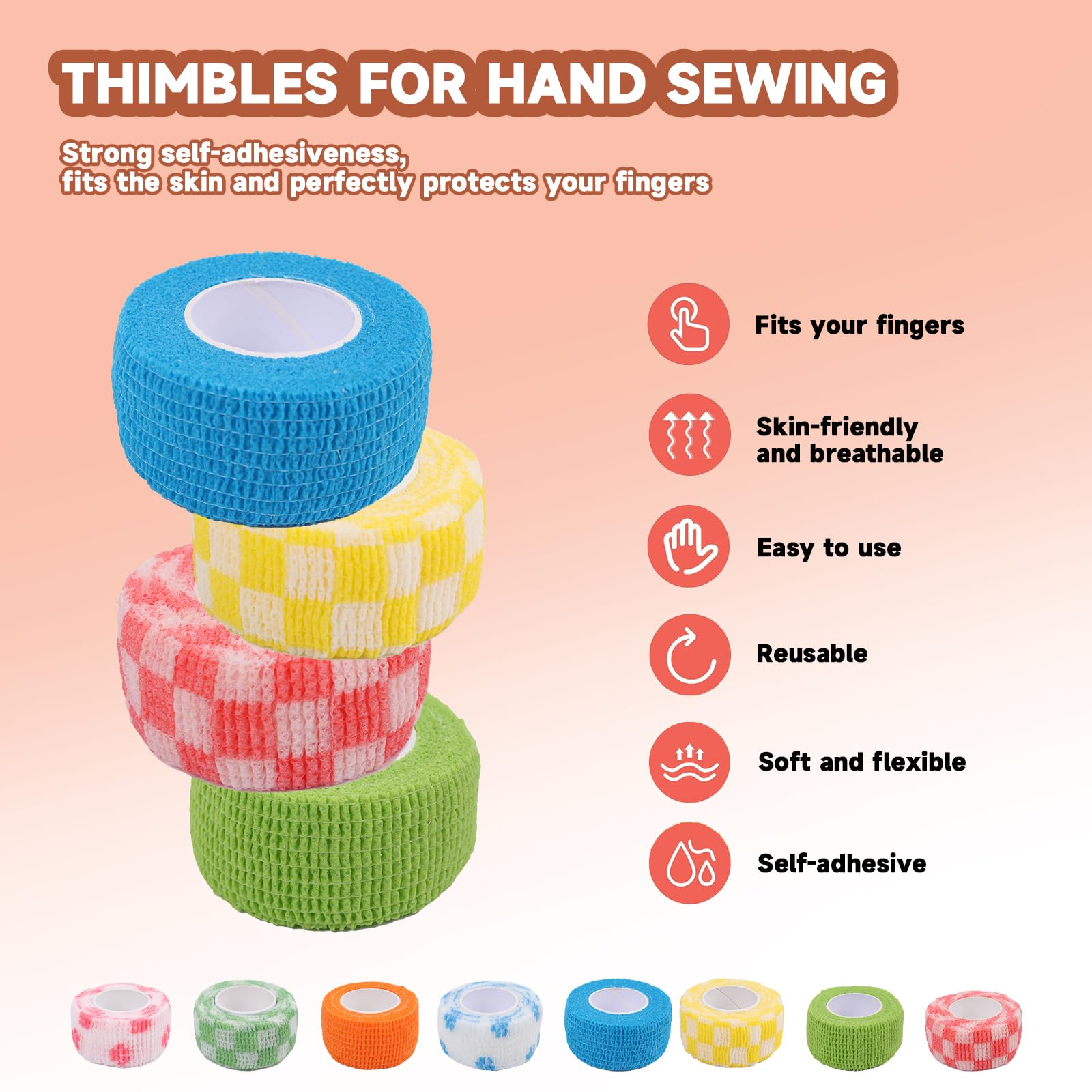 Comfort-First Finger Armor: Ditch bulky thimbles! Our 8-color thimble tape for hand sewing makes breathable finger protectors for sewing that conform to joints. Self-adhesive grip wonβt slip during embroidery. Extra versatility: Cut to size for pet care as bandage shoes for dogs or dog bandage wrap