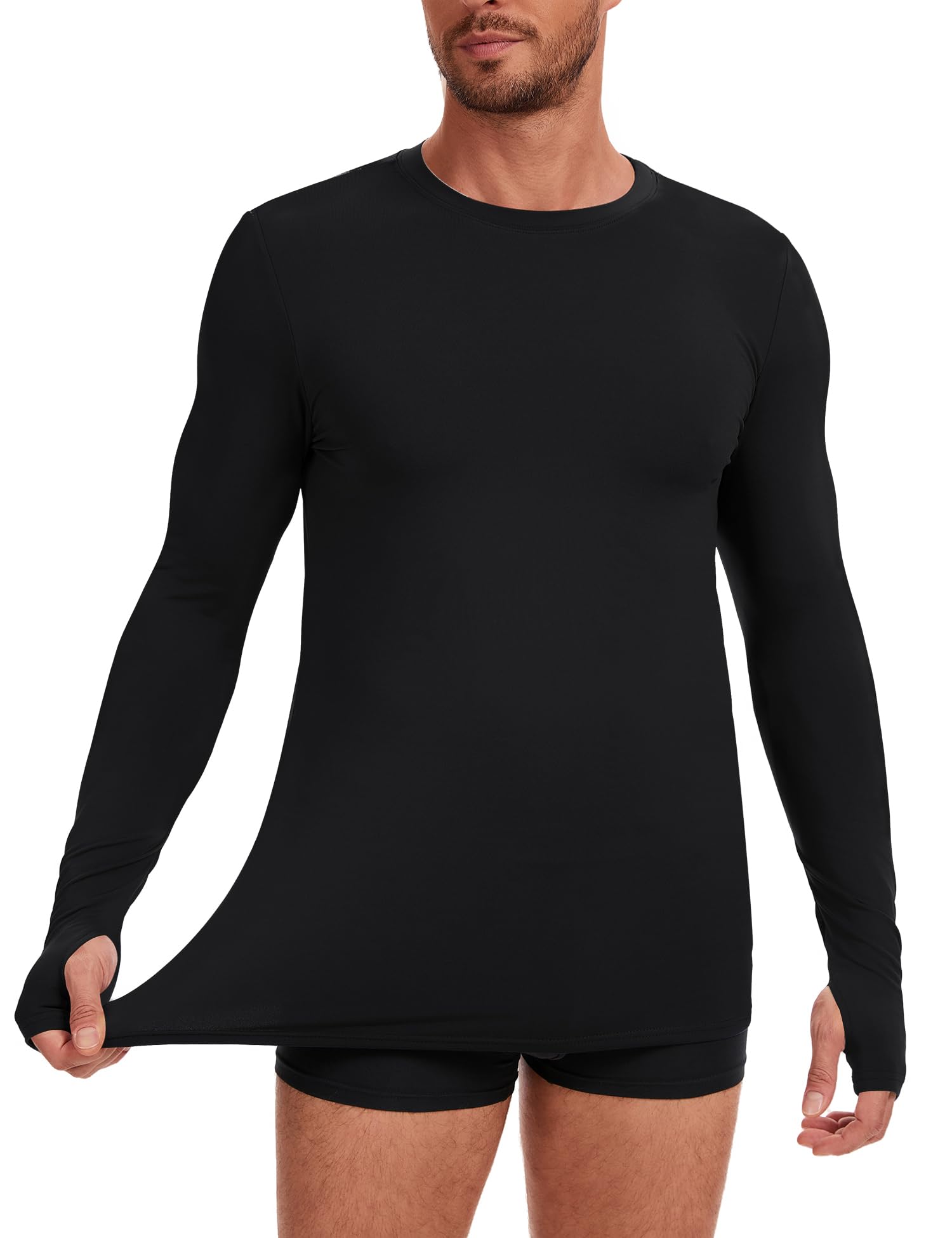 4-Way Stretch for Full Mobility – Engineered with flexible material, this thermal top for men allows unrestricted movement without chafing or bunching, perfect for active outdoor use. And Thumb holes keep your sleeves in place and nice for keeping wrists warm,If I had to design the perfect winter top for me, this would be it.