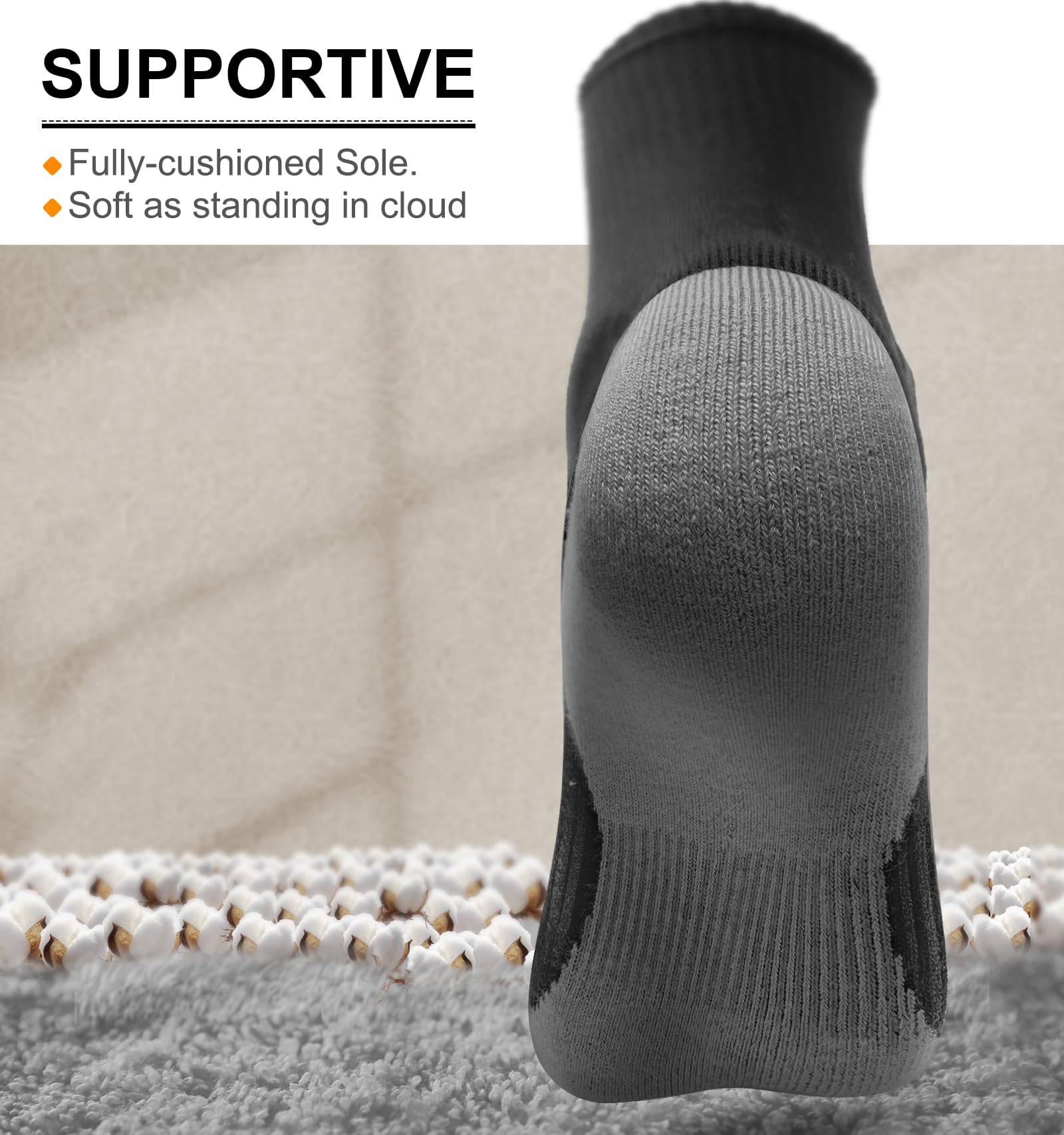 SURPORTIVE--Soft yarns makes it super friendly to the feet,full cushioned sole and arch support band gives the best shock absobing,these socks make you ever step comfortable and easier;