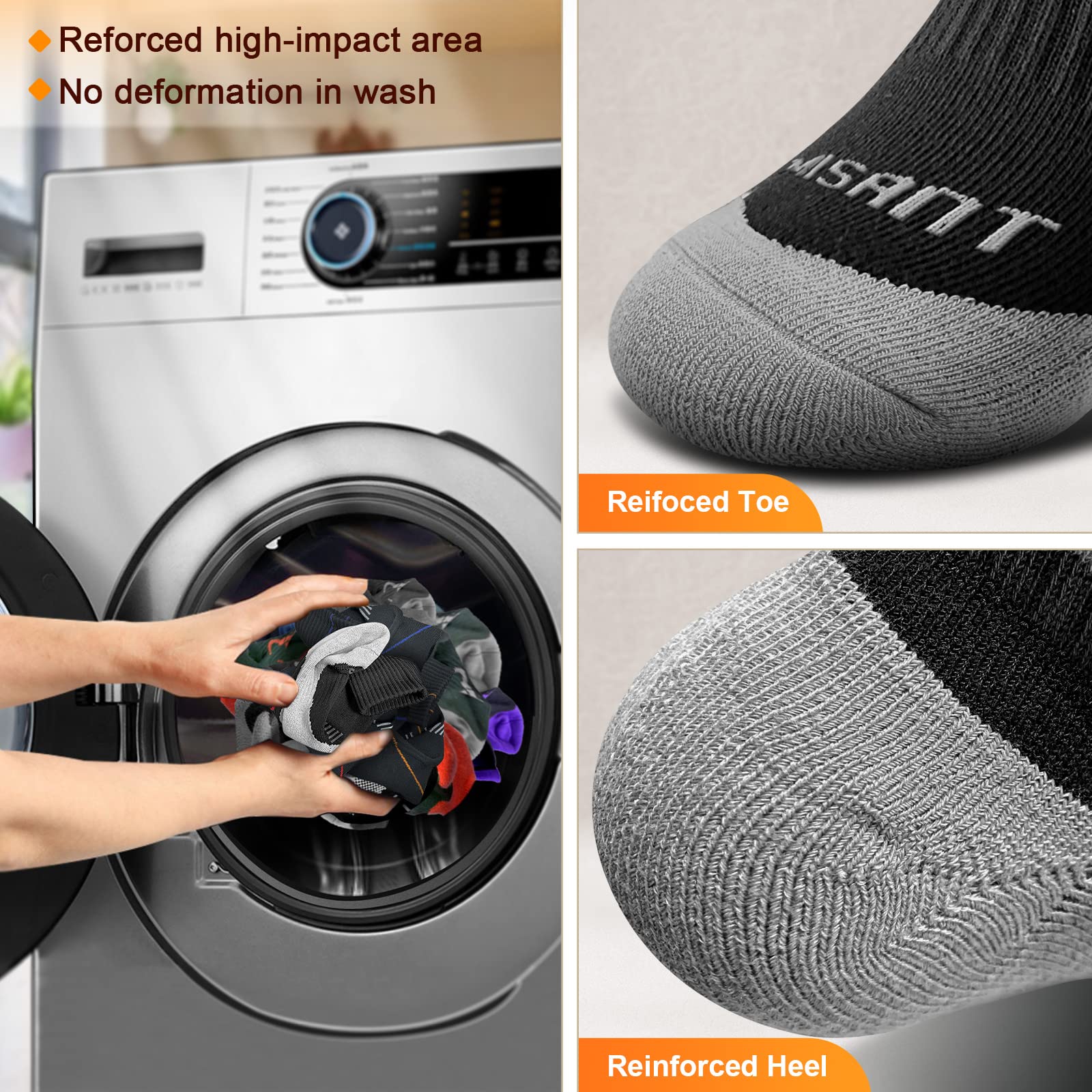 BREATHABLE--High efficient wicking yarns makes it quick moisture taking,the ventilation channels enhance its air flow,these socks can keep your feet dry all the day;