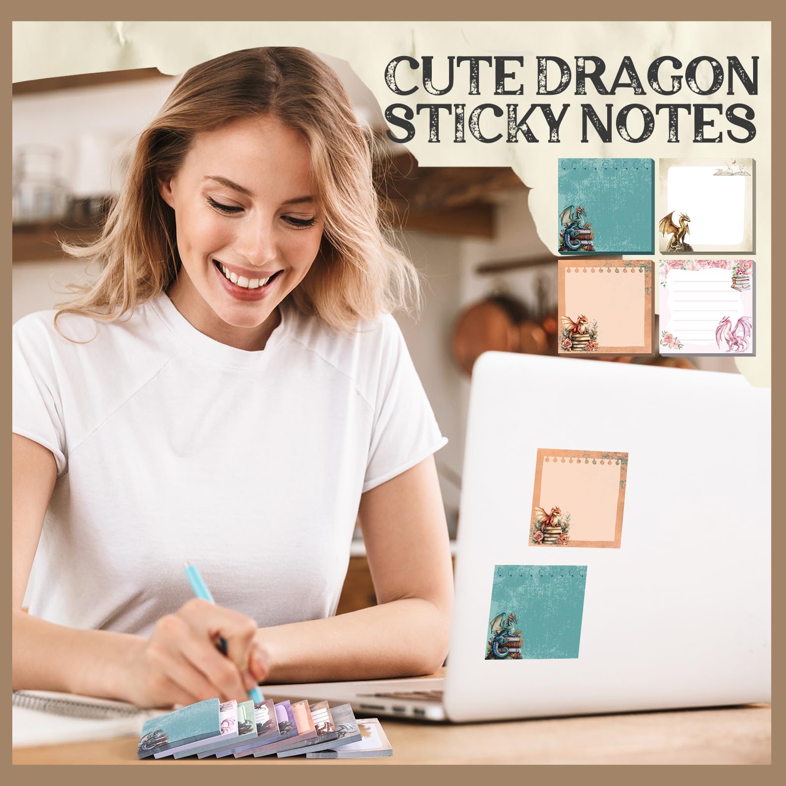 Delightful Dragon Design: the dragon sticky notes showcase a charming and vivid design of these mythical creatures; Each sticky note features an exquisite pattern that captures the distinctive characteristics of dragons, from their magnificent scales to their powerful auras; This makes a wonderful addition to the sticky note collection of fantasy lover