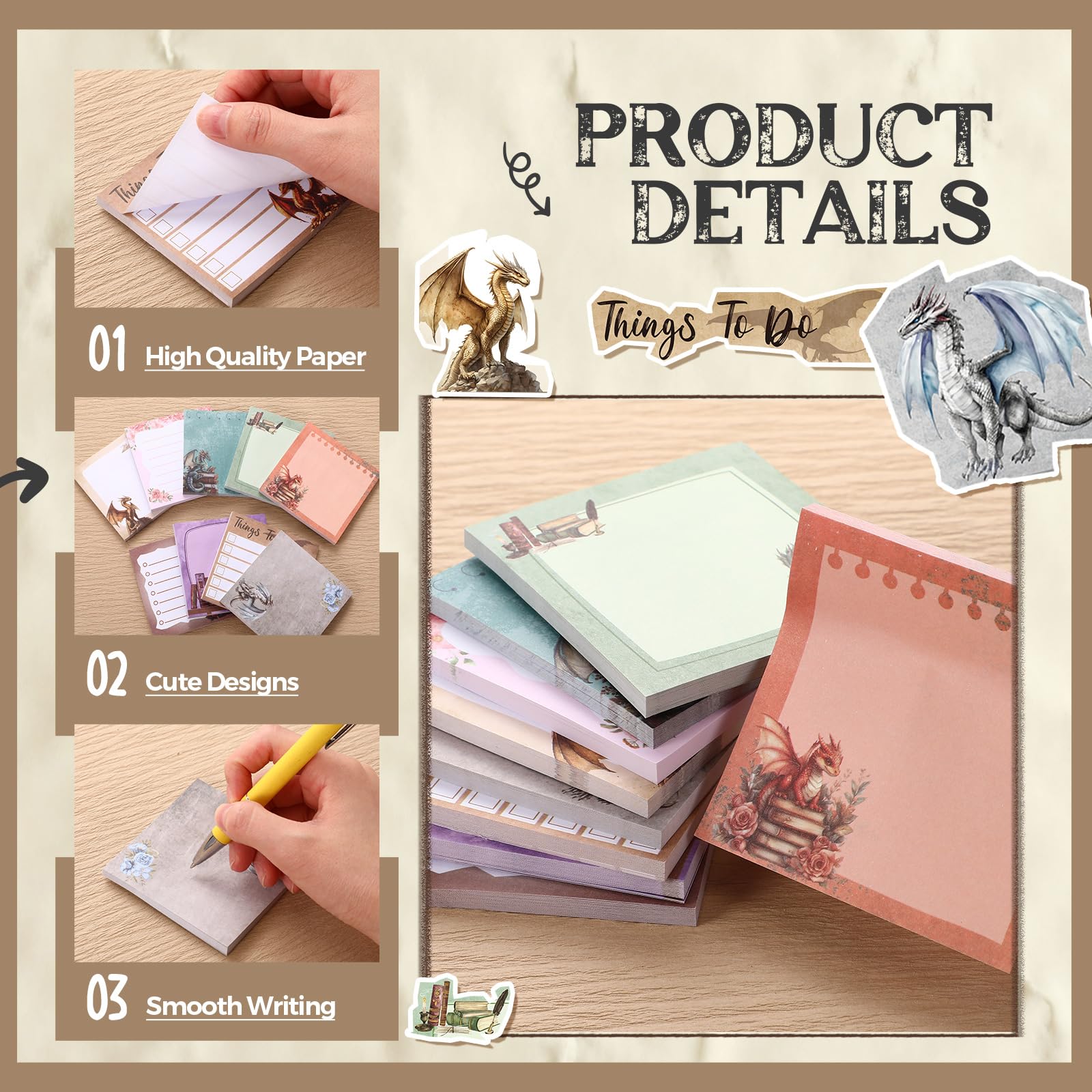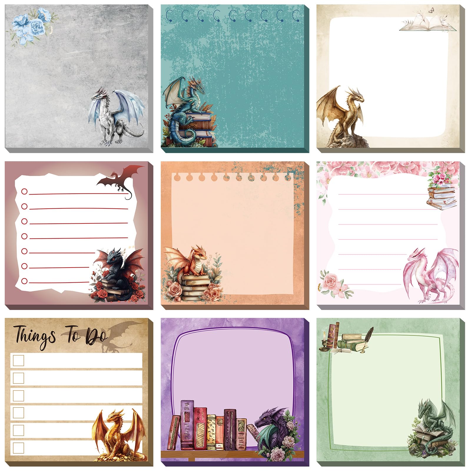 Package Contains: the set of dragon sticky note pads includes 9 pads, with 50 sheets each, providing a total of 450 useful and attractive notes; Each note measures about 3 x 3 inches/ 7.6 x 7.6 cm, poised to assist in organizing and efficiency tasks