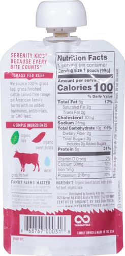 100% GRASS FED BEEF: Contains 1 pouch of baby food puree made from ethically sourced Grass Fed Beef with organic sweet potatoes and kale.