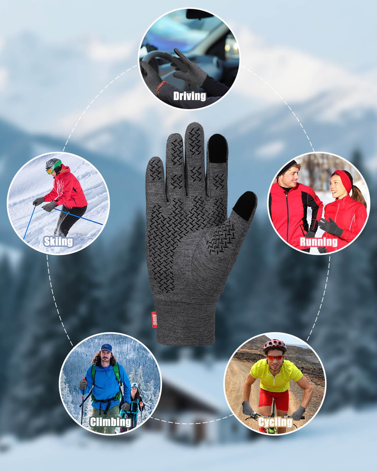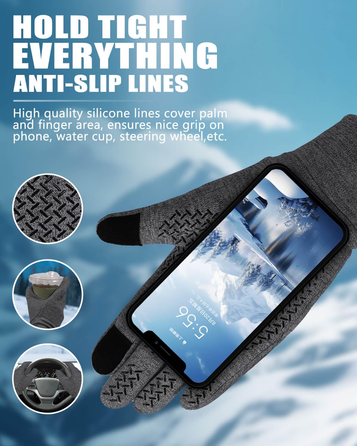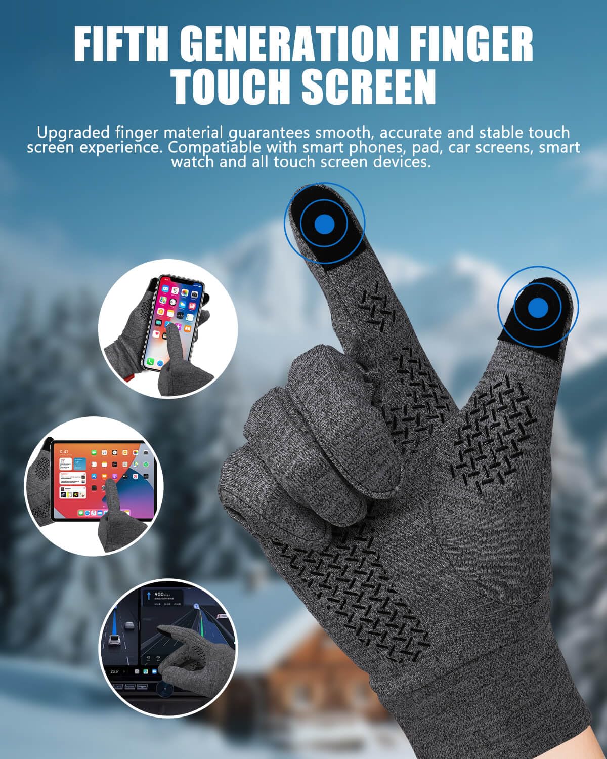 šćSensitive Touch Screen Fingertipć We've tested multiple conductive fabrics over and over again to achieve a more sensitive touchscreen experience. Our warm gloves for cold weather can keep your hands warm but still allow you to operate your phone. Don't miss important calls, deal with urgent work in time, and take pictures of beautiful scenery. Upgraded touchscreen material on the thumb and index fingers has better sensitivity and stability for any digital devices.