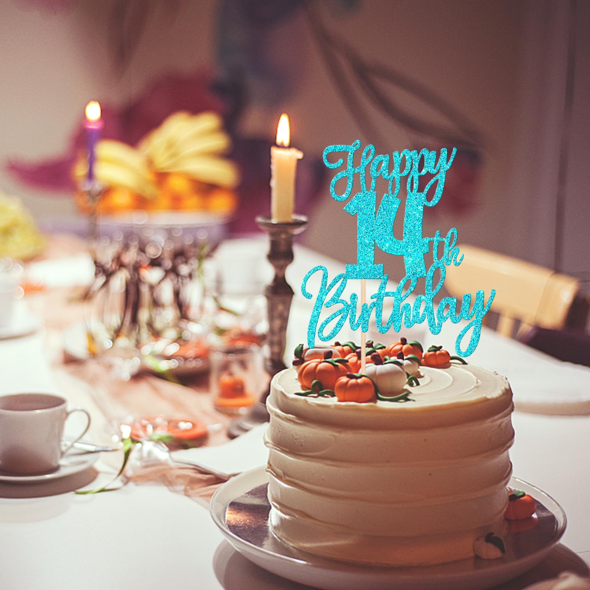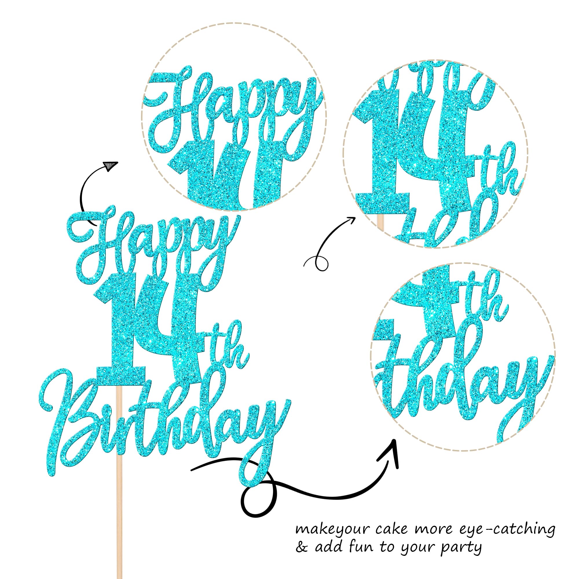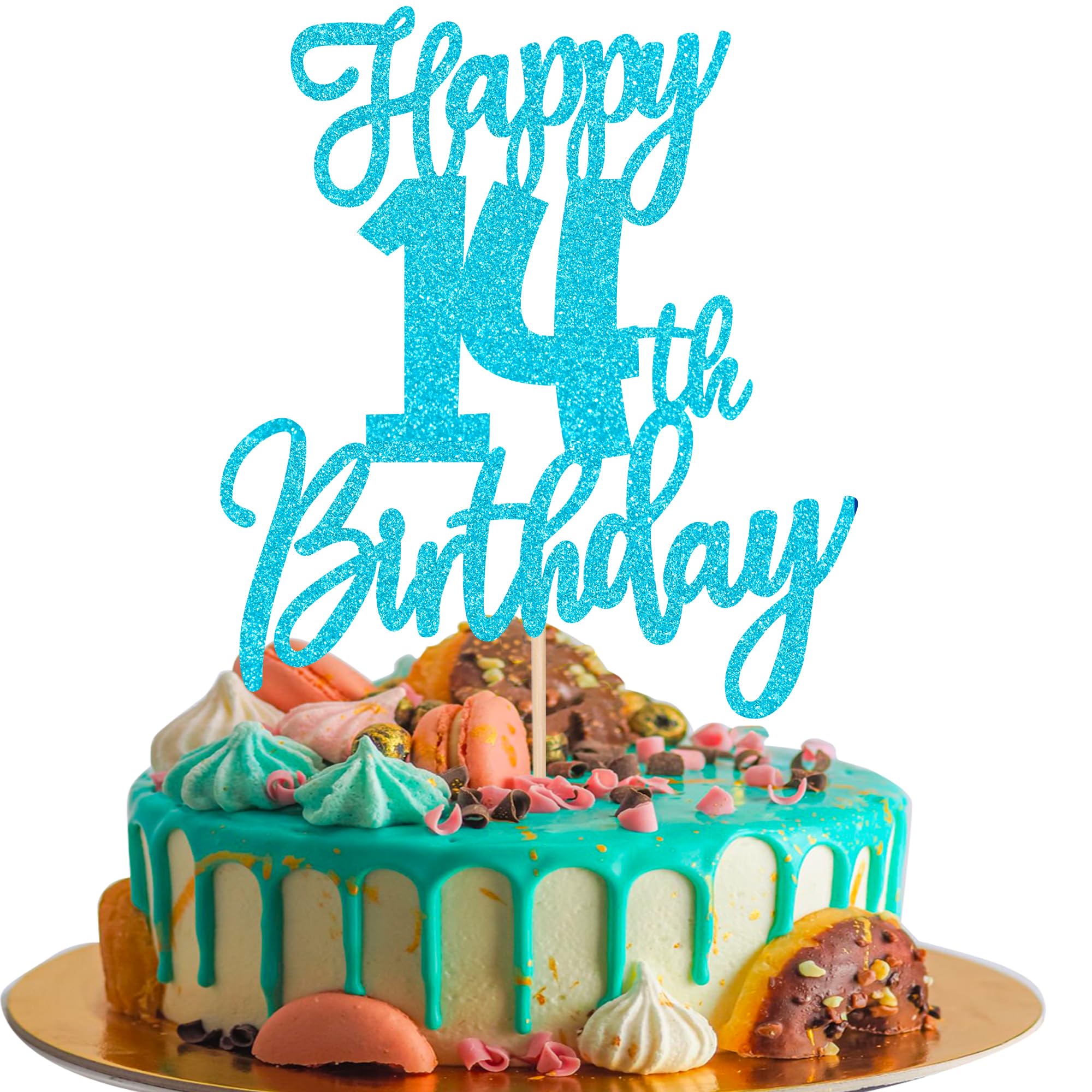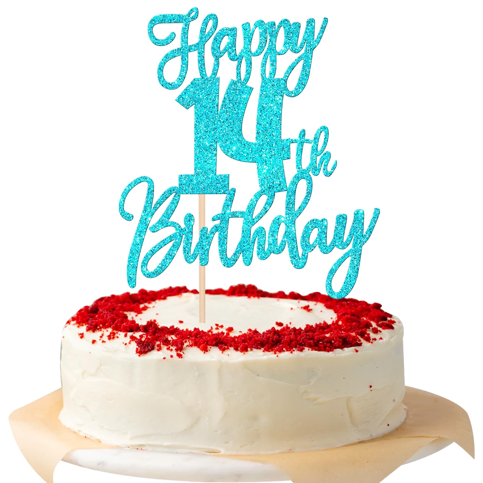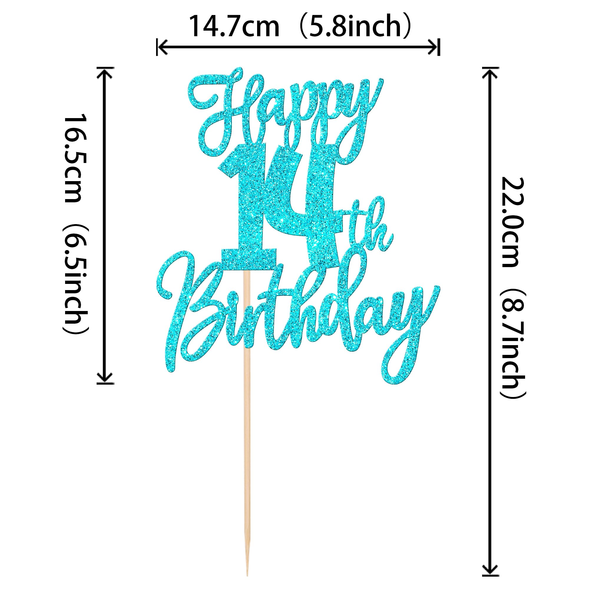 Happy 14th Birthday Cake Topper for Happy 14th Birthday Theme Party Cake Decorations Supplies Perfect for happy 14th birthday theme party,cheers to 14 years theme party,14th anniversary theme party cake decorations supplies. Pack of 1 pcs. The size is W 5.8 inch * H 8.7 inch / W 14.7 cm * H 22 cm ( with stick ) Made of high quality paper card stock and food grade sticks,thick and sturdy. This cake topper is one side glitter, another side is white, and this is intended for decoration only, please do not put them in oven or microwave. If the item you received has any defects, please contact us for refund.we will deal with it within 24 hours.