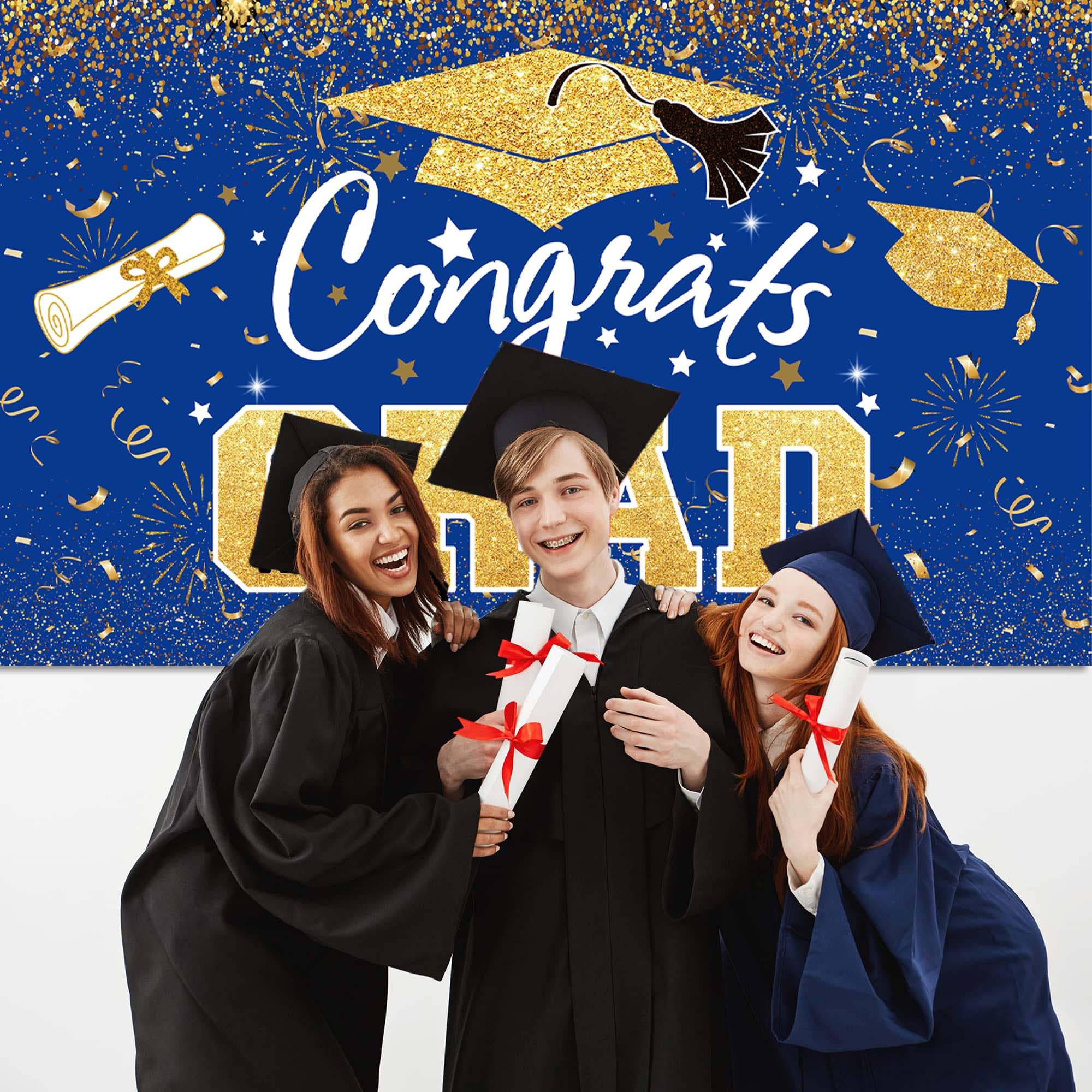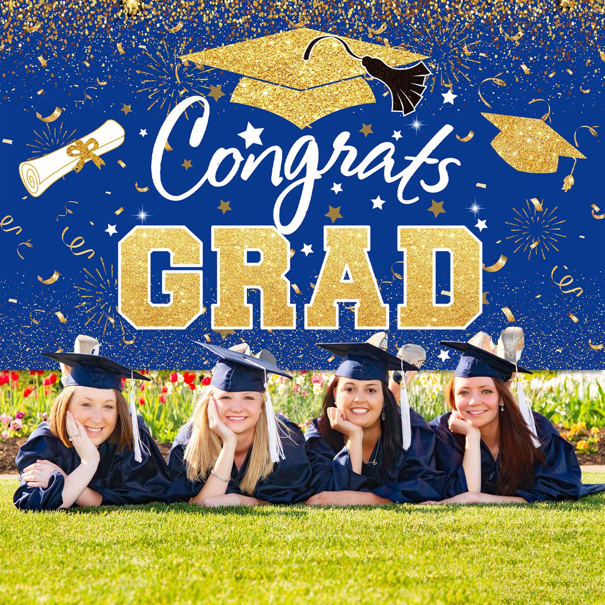 Celebrate the class of 2025 with our stunning graduation backdrop banner! This banner is the perfect decoration for any graduation party or ceremony. It reads "CONGRATS GRAD", The banner is made of high-quality vinyl material that is both durable and easy to hang. It measures 5.9 feet by 3.6 feet, making it the perfect size to use as a photo backdrop or to decorate a party space. This graduation banner can be hung indoors or outdoors, making it perfect for porch signs. It is weather-resistant and can withstand the elements, ensuring that it stays in great condition from the beginning to the end of the celebration. Our graduation banner is not only great for graduation parties, but also for other occasions such as school events and photo shoots. It is the perfect addition to your 2025 graduation decorations, whether you are celebrating a high school or college graduation. Make your 2025 graduation memorable with this stunning graduation backdrop banner. It is the perfect way to show your pride and commemorate this special occasion. Order yours today and add the perfect touch to your graduation decorations!
