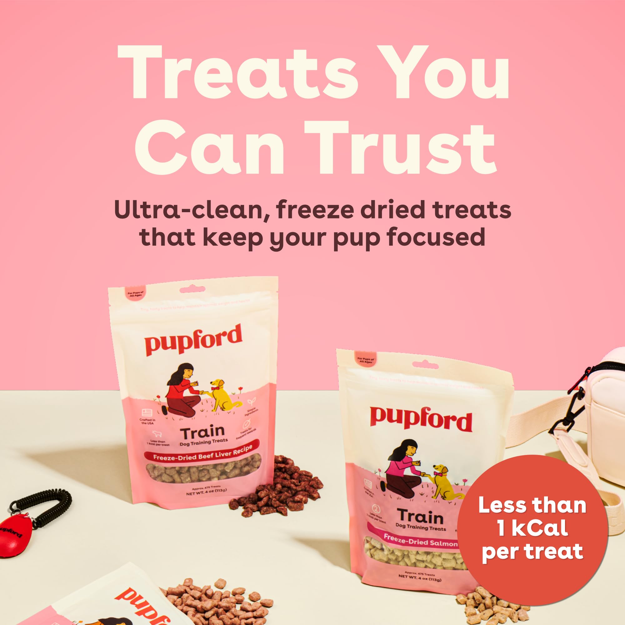 Mess free treats: No oily, greasy, crumbly messes here, Pupford treats keep your hands and pouches clean. You can even keep some in your pocket for walks, classes, or mini adventures without worrying about them getting grimy or stale