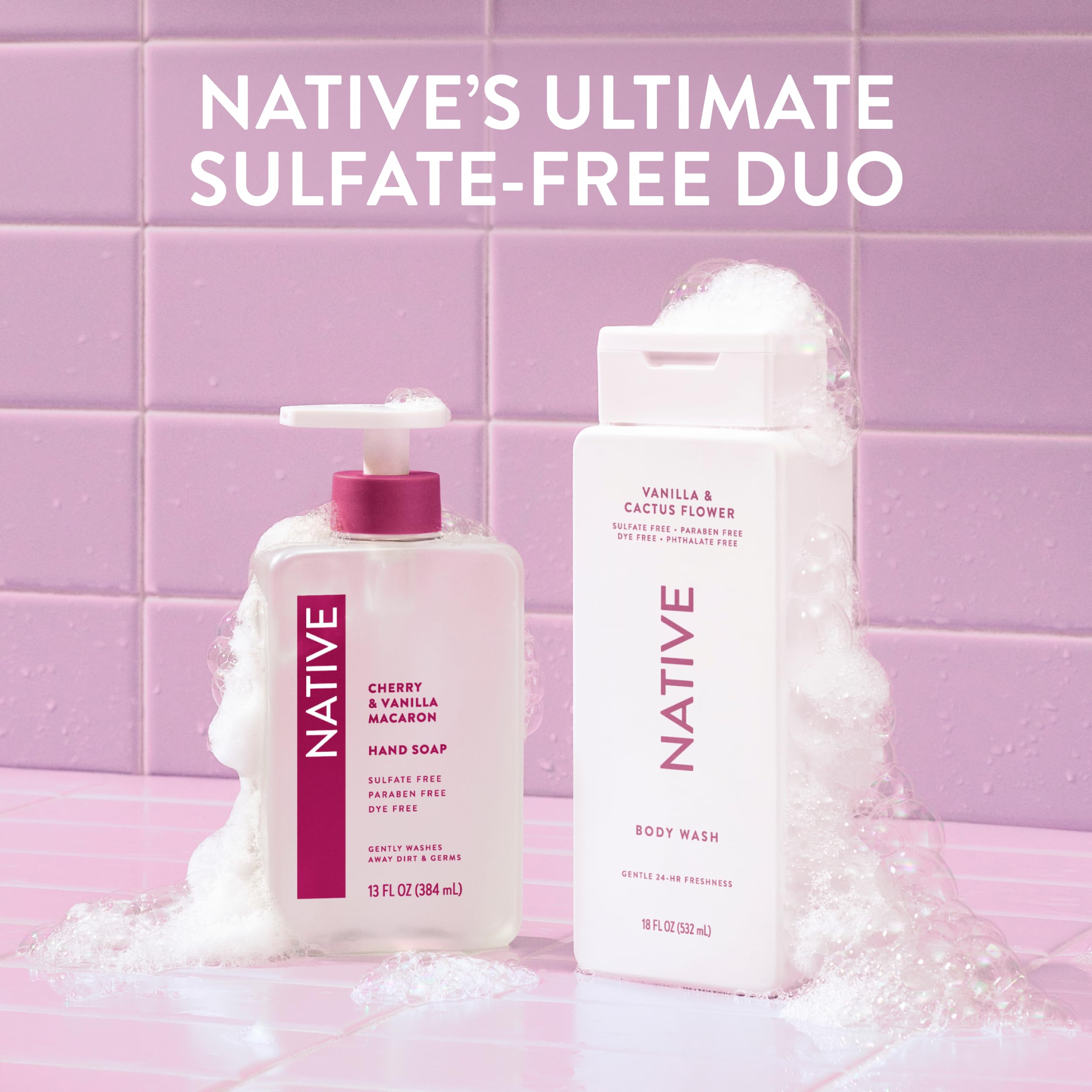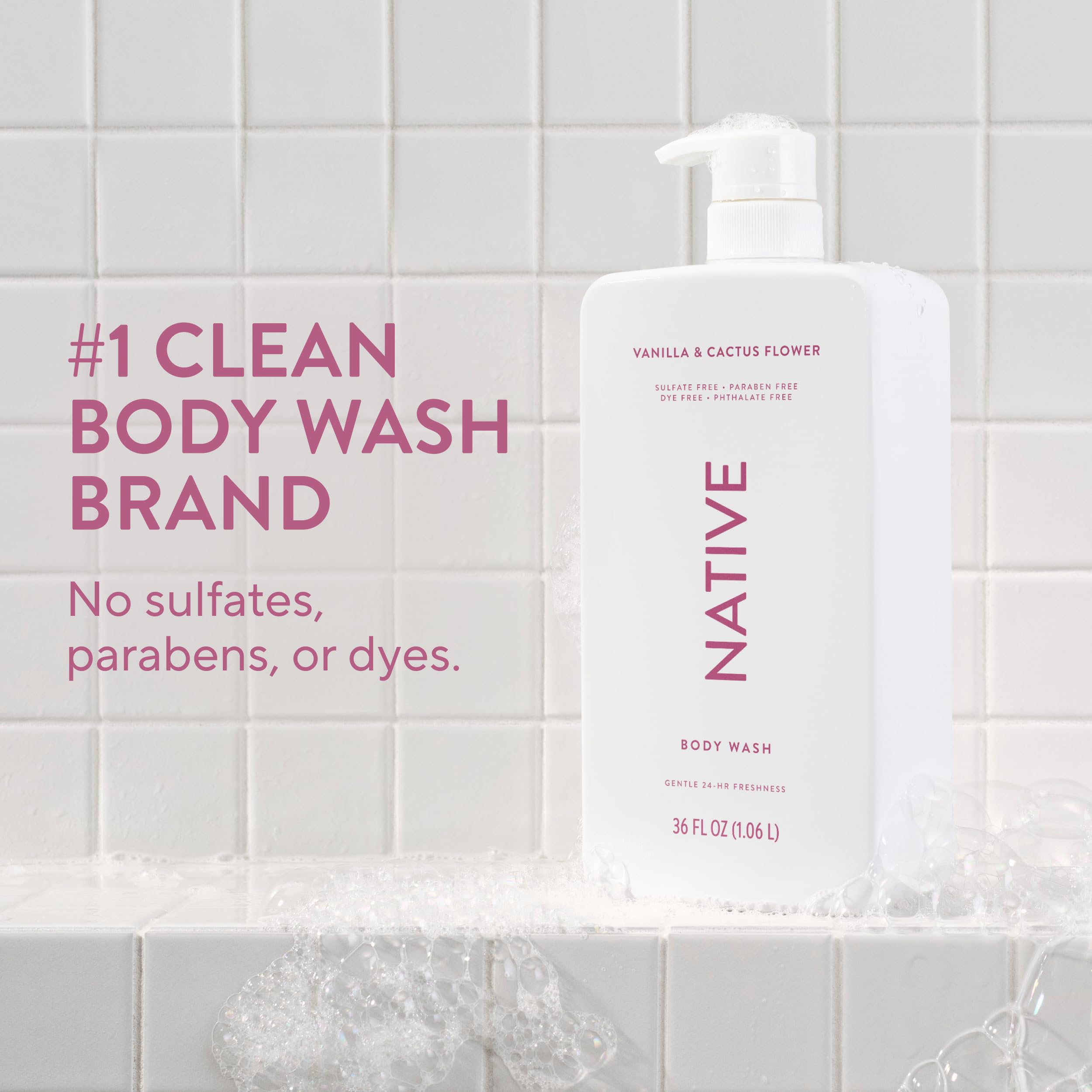 Native Body Wash gives you a luxurious lather in the shower, leaving skin feeling soft, hydrated, and squeaky clean. Free of sulfated surfactants, parabens, phthalates, and dyes, it's thoughtfully made with 9 ingredients for a refreshing wash that doesn't dry out skin. Native Body Wash is formulated for men and women and designed to support your skin's natural pH. Powered by plant-based cleansers, Native Body Wash rinses away effortlessly and is great for all skin types. Let the refreshing scent turn your shower into a happy escape. Singing while you wash is highly recommended. Native: Clean. Simple. Effective. Like all Native products, this daily shower gel provides a delightful personal care experience. Complete your self-care routine with Native's full range of products including deodorant, hair care, and moisturizing lotion.