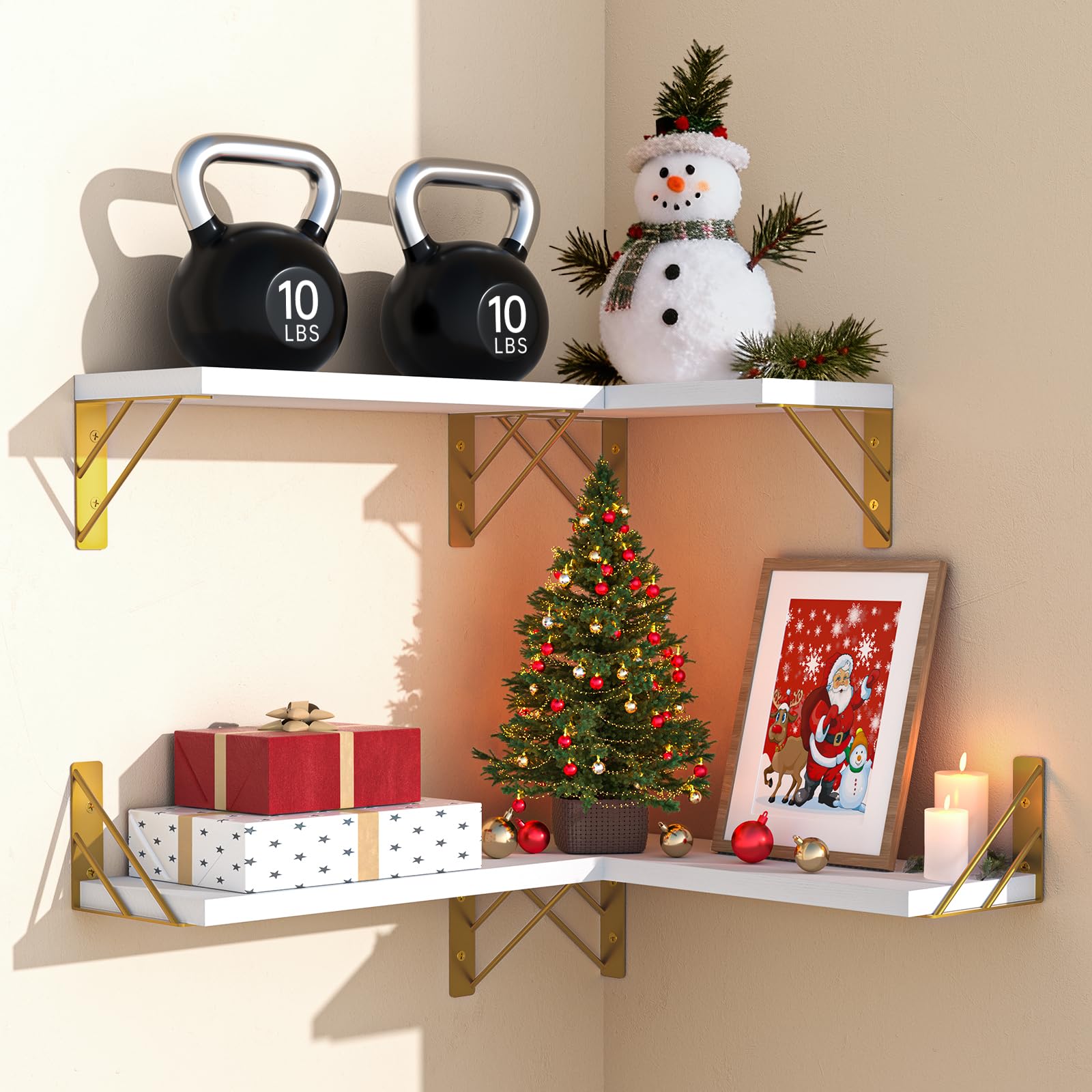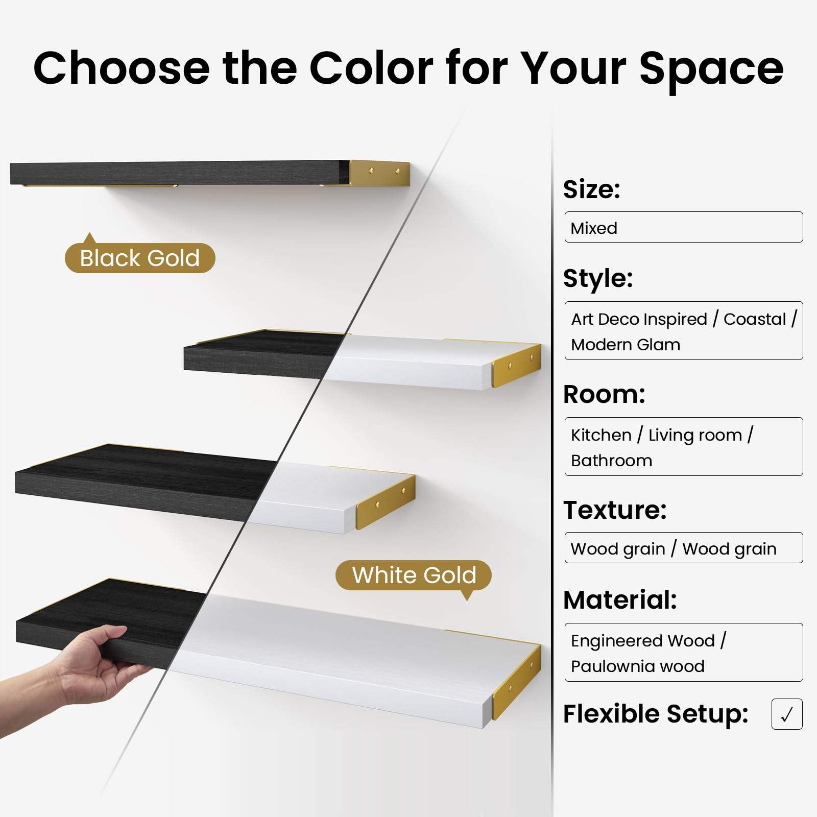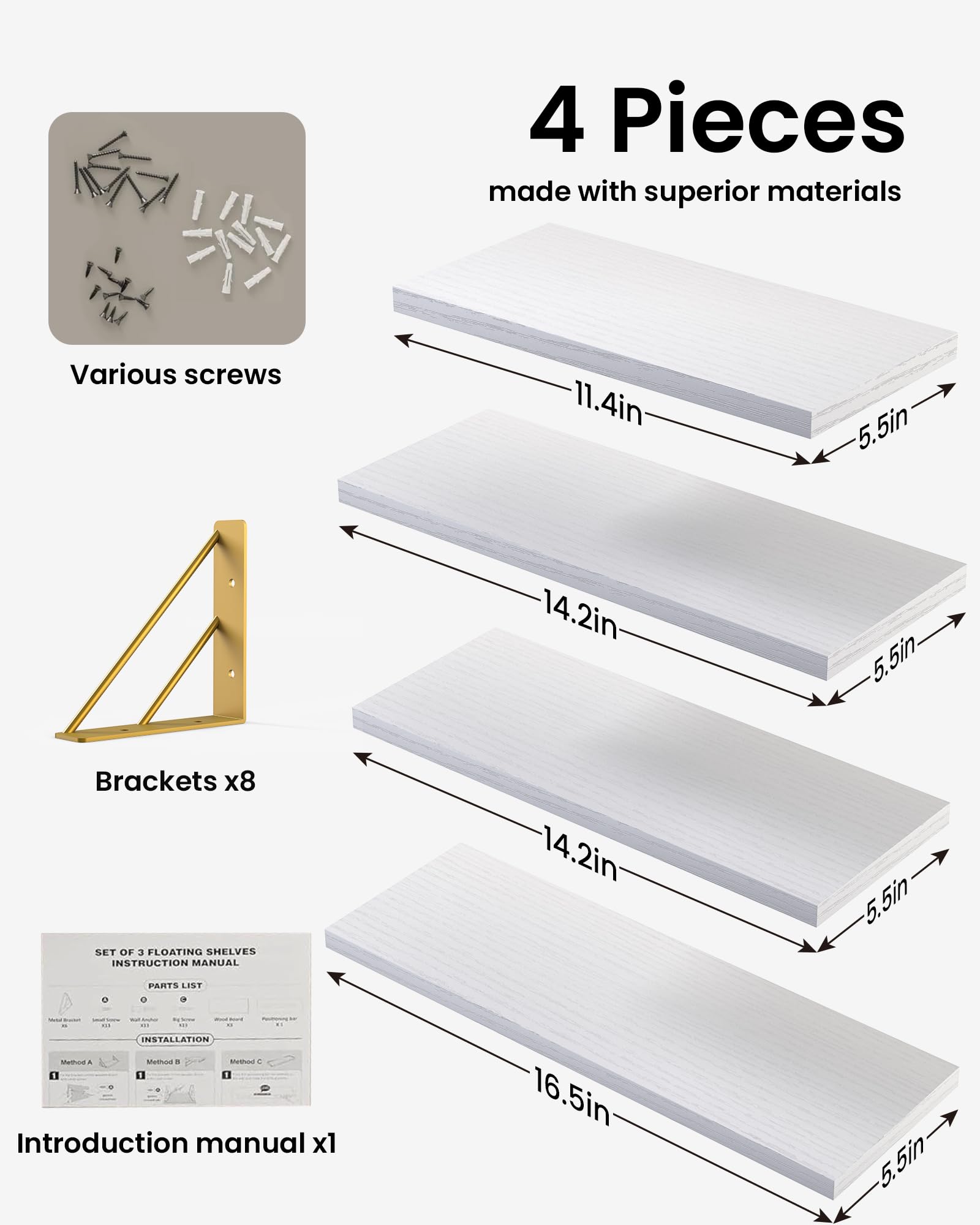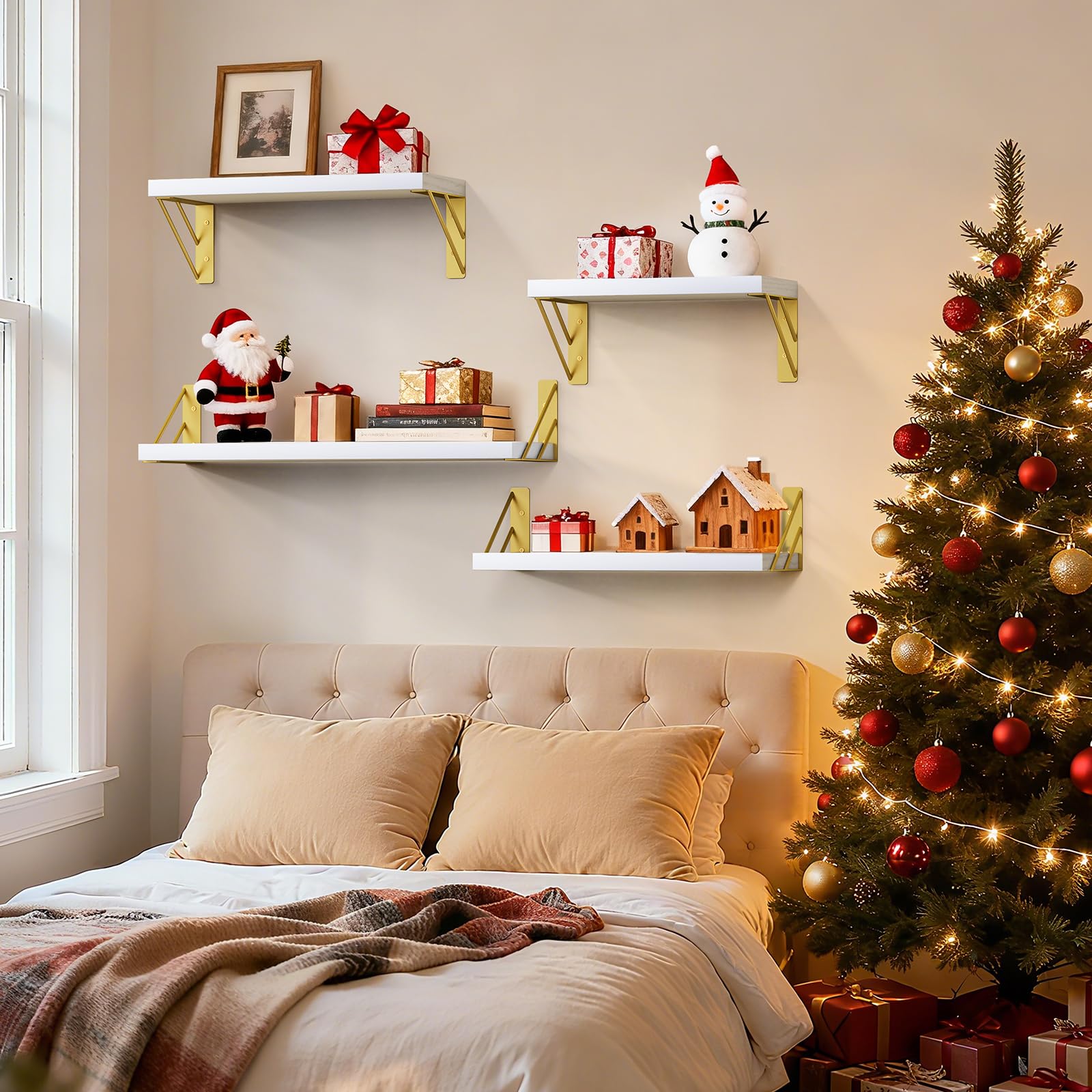 Organize your space with our wall mounted shelves. These white gold shelves are perfect for bedrooms, bathrooms, or living rooms. With their sleek design and easy installation, they are ideal for any room, providing both practicality and a stylish touch