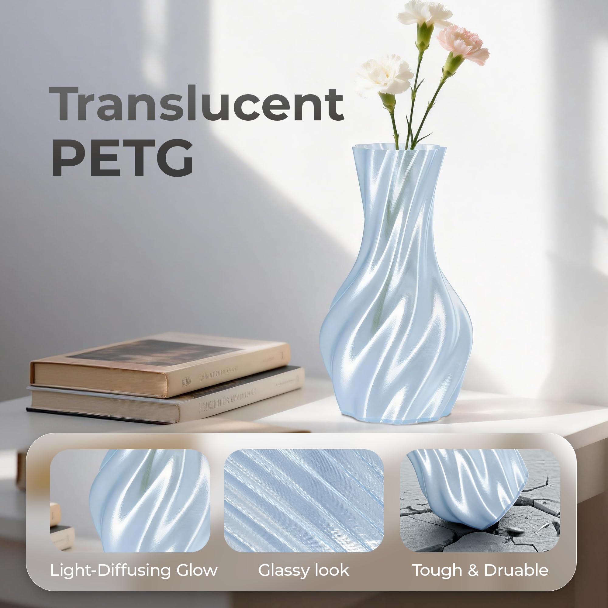【Toughness-enhanced PETG】 Creality PETG choose durable and strong material that delivers excellent clarity, light transmission, and a glossy finish. It is recommended to use a printing temperature of 220-250°C and a base plate temperature of 70-80°C for better printing results.