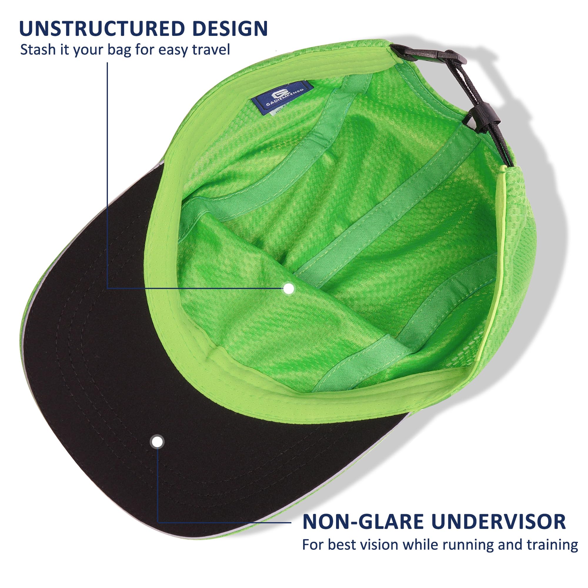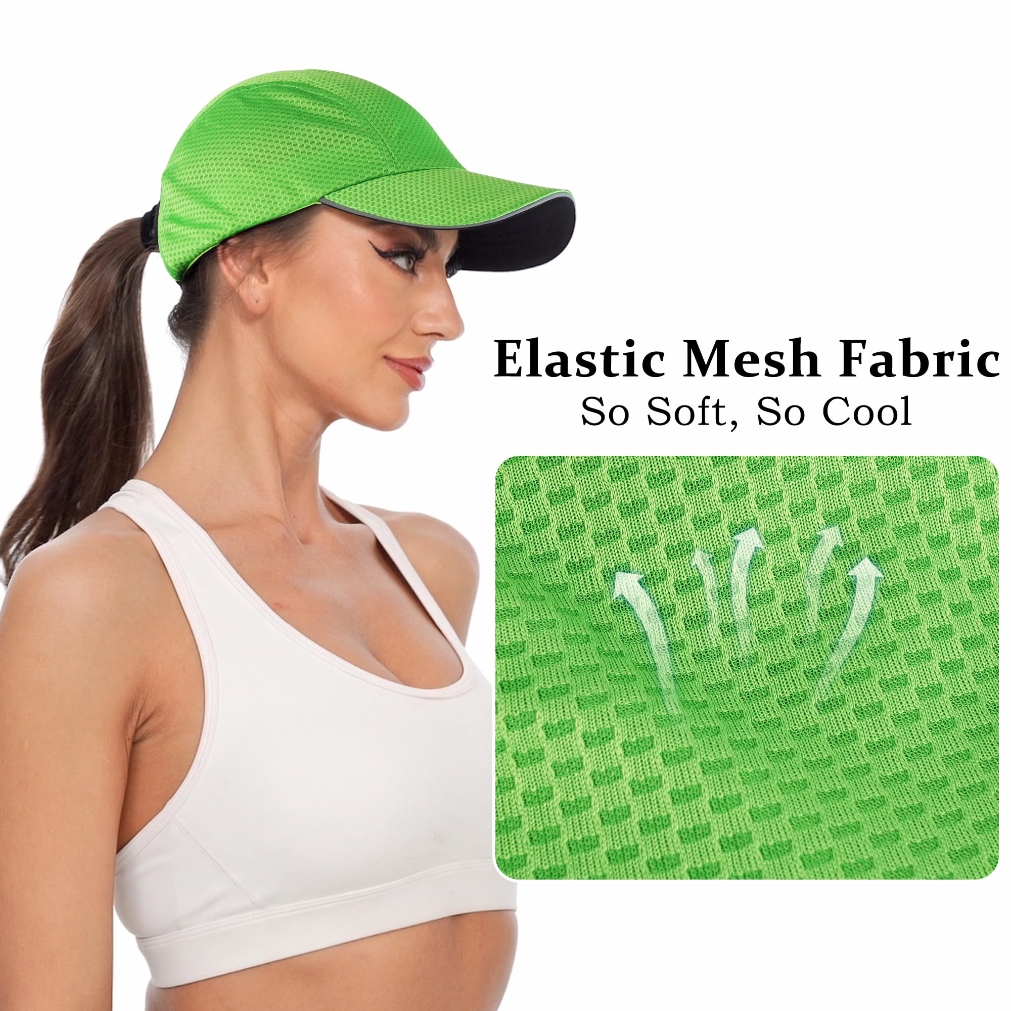 Retroreflective Safety Details: This cool sports cap for women features a stylish reflective ‘sandwich’ trim (also a small reflective details appears on the back) that enhances visibility and safety during those early morning and late afternoon running workouts