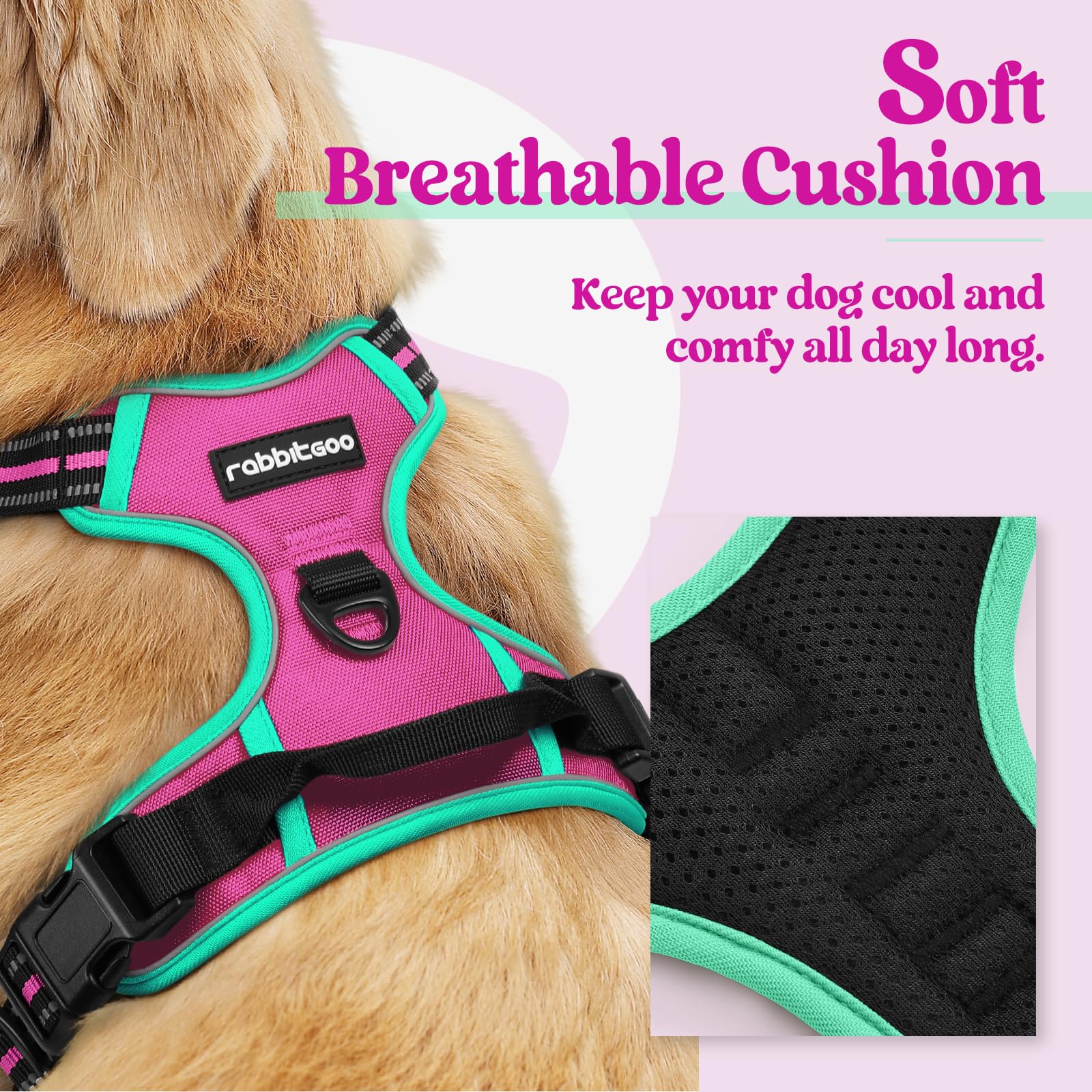 Safe and Comfortable - Your dog will enjoy the daily walk in this comfort dog harness! Made of sturdy nylon oxford and padded with soft cushion to protect your dog's skin. Breathable air mesh keeps your dog cool during outdoor activities. Super bright reflective strips ensure a safe walk both day and night