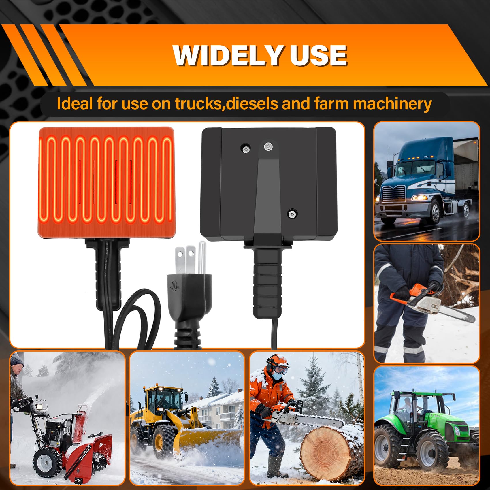 【Wide Application】1160X magnetic heater can be used for heating various types of engines (trucks,diesels,farm machinery), oil pans, engine blocks, battery brackets or intake manifolds, hydraulic systems, etc., to make them start faster.WARNING: DO NOT touch hot surface; KEEP AWAY from children