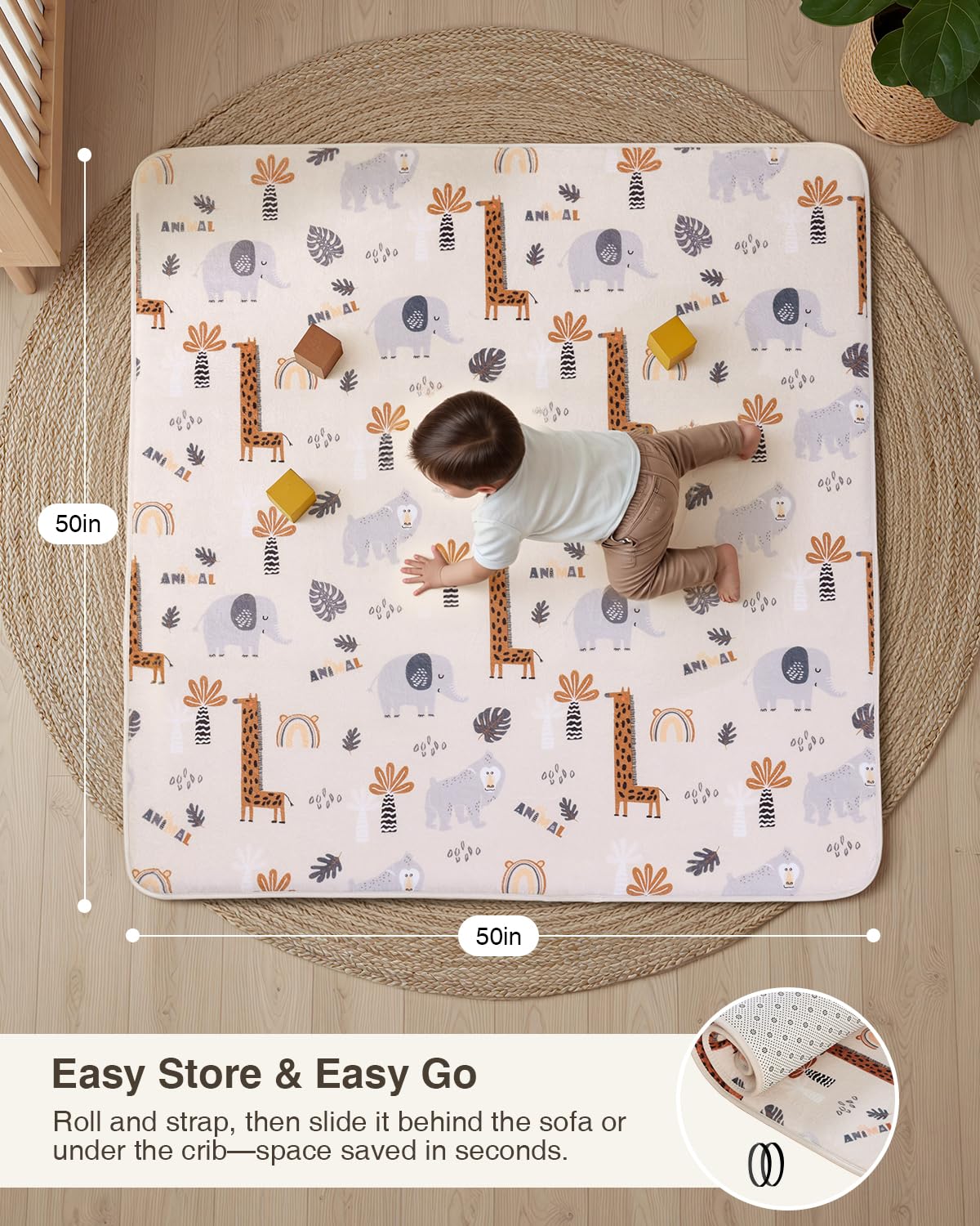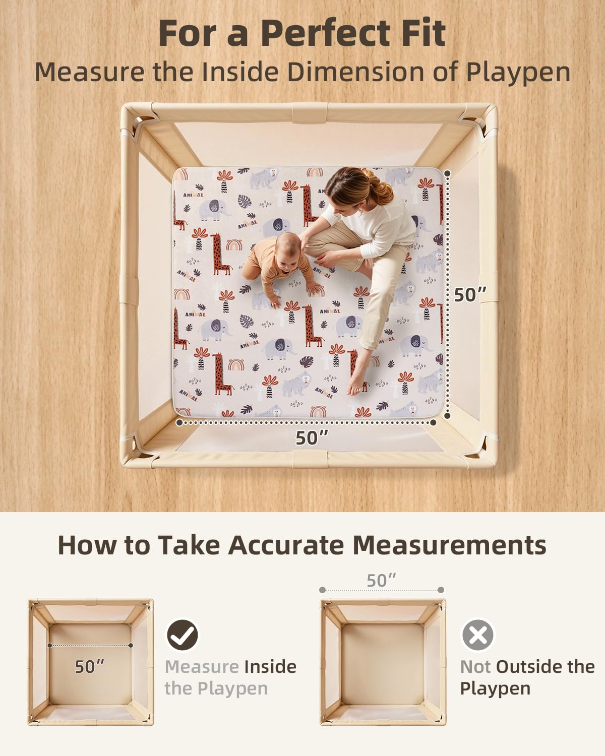 Versatile Use:The 50×50 playpen mat pairs perfectly with most baby playpens and also works well in children’s tents, playrooms, or as a nursery rug. Two included elastic straps make it compact and easy to store or carry, so you can set up a personal playground at home or on the go.