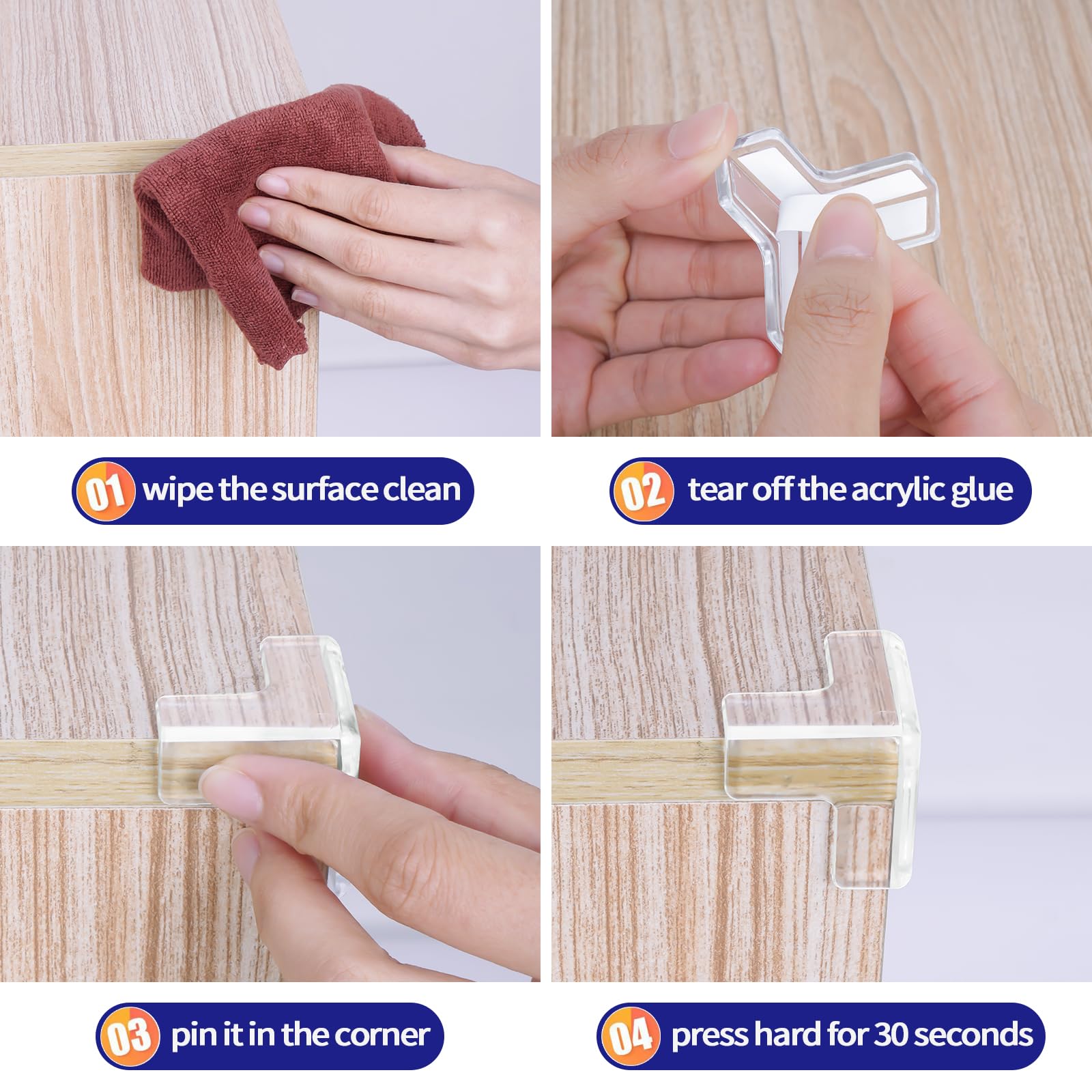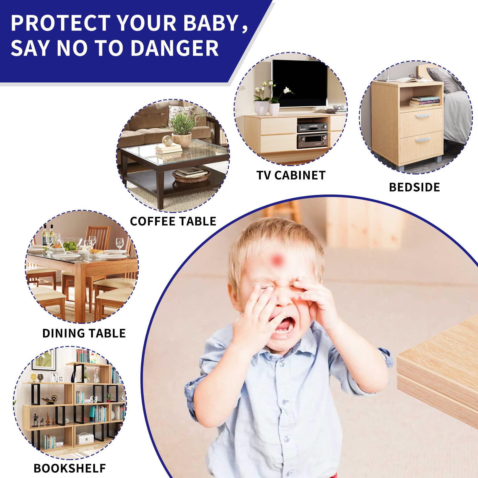 Easy to Install: Our corner guards baby proof use upgraded acrylic adhesive, you only need to clean the surface of the target furniture, remove the protective paper, and then press the corner covers baby safety on the corner of the table, you can enjoy strong protection, using a hair dryer can remove the baby proofing corner guards, will not leave any trace