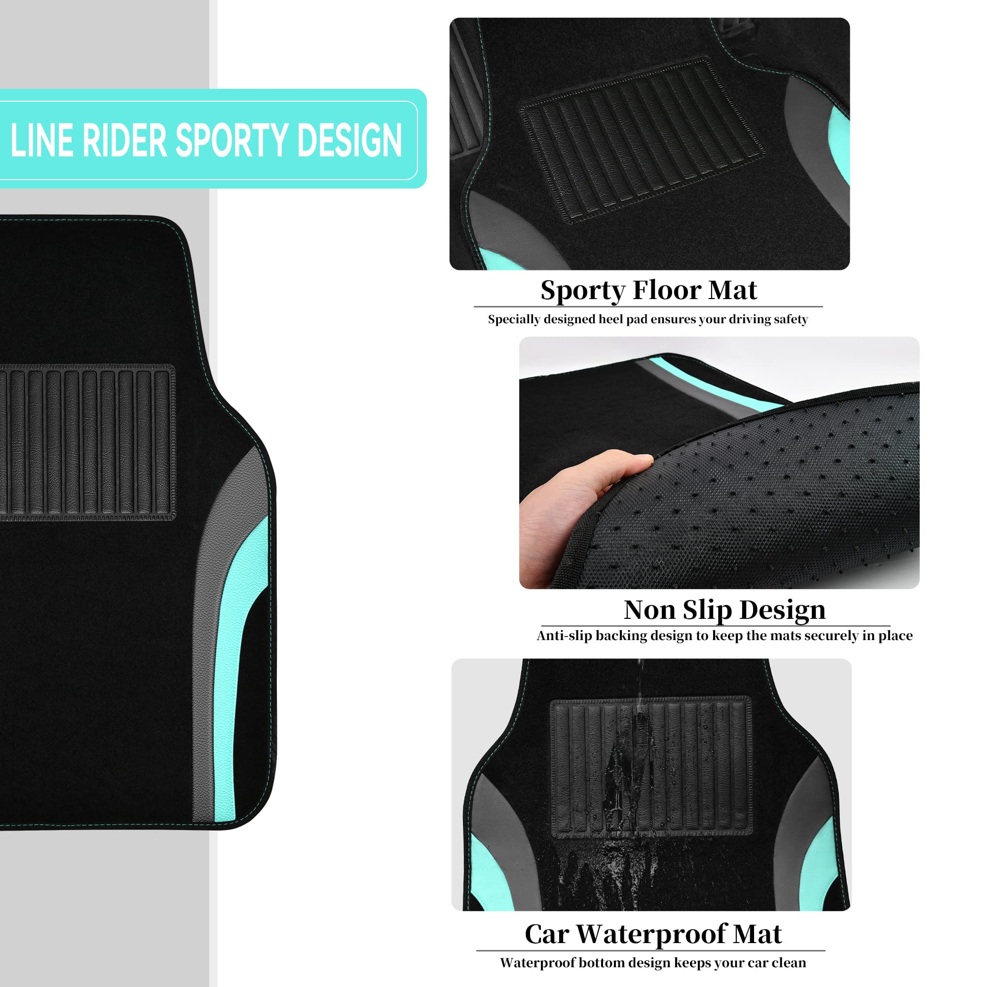 ANTI-SLIP NIBS. All the mats in this set come with non-slip backing so that it stays securely in place, non-skid design won’t slip or slide around on the floor, you wouldn't waste your time to adjust the mat. You would find the mat completely match your vehicle.