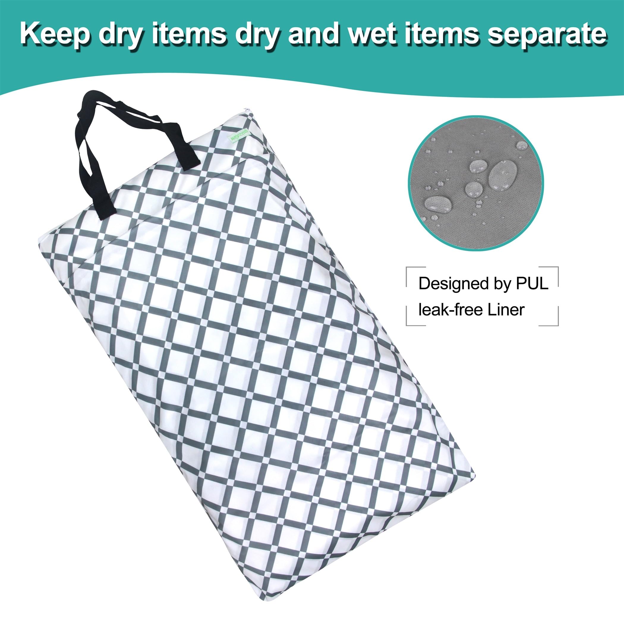 Wegreeco Hanging Wet/dry Cloth Diaper Bag is an ideal solution for one bag can carry your wet and dry items at the same time while keeping them separate. 2 Metal zippers with precise stitching and quality interior & exterior PUL fabric makes these bags and keep moisture in. Washing the bag right along with your diapers or laundry! No need to wash the diaper pail liner every time when wash the diapers inside it and leak-free surface can be easily wiped clean with a wet cloth. Wegreeco takes great attention on Quality. All of the bags are precise stitching and quality interior & exterior fabric. Care instruction Machine wash with Hang dry or tumble dry on low. Do not use fabric softeners or other additives. Simply toss it in your washing machine when wash them, right side out. We recommend purchasing two wet bags to rotate them in the wash. Wet items must be fully wrung out before placed in the bag, excess water may cause leaks through the seams.