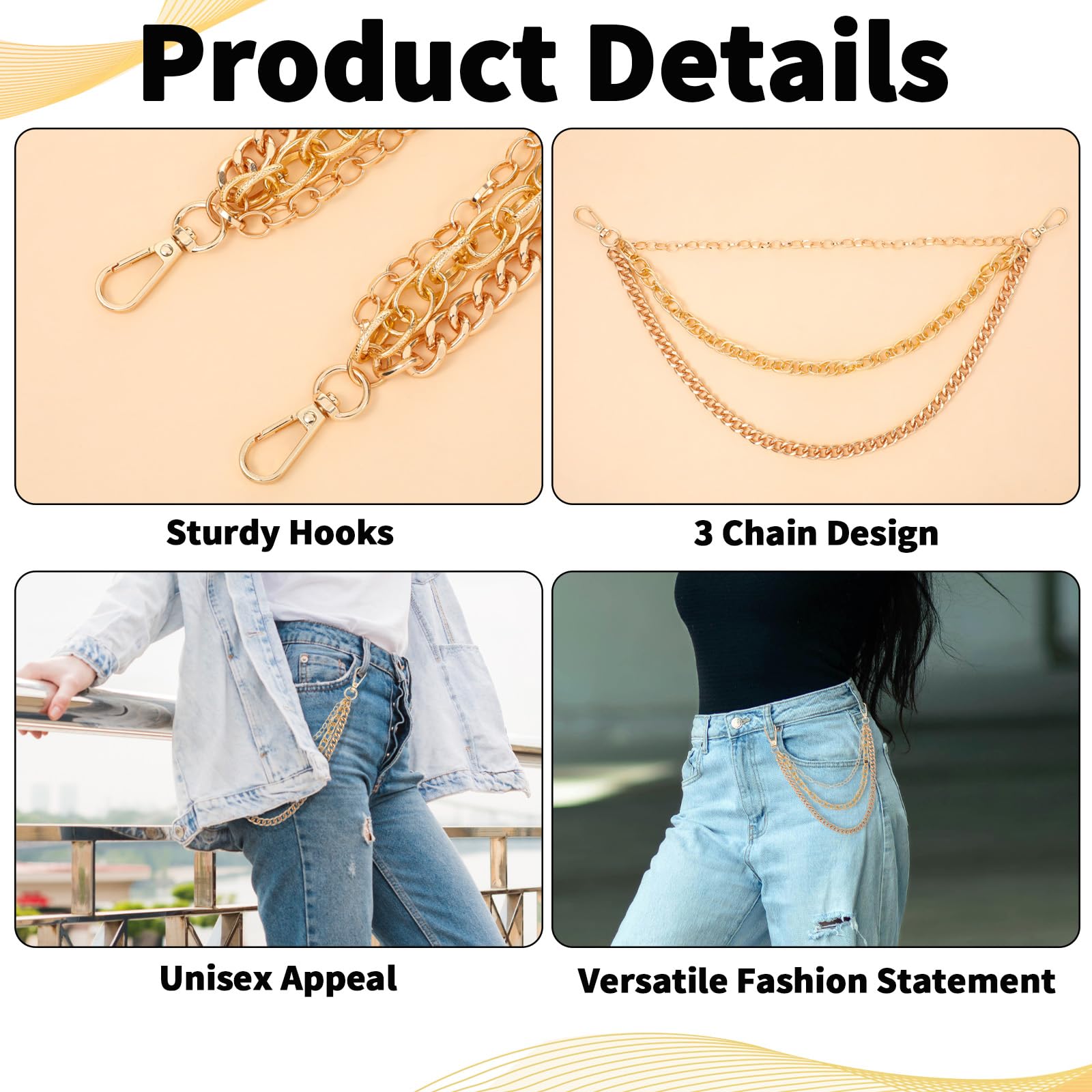 Multiple Functions: You will receive a 3-layer gold wallet chain, including both clasps. The style is fashionable and simple, can be matched with jeans, pants, belts, backpacks, pocket, etc. suitable for punk, hip hop, gothic, street style