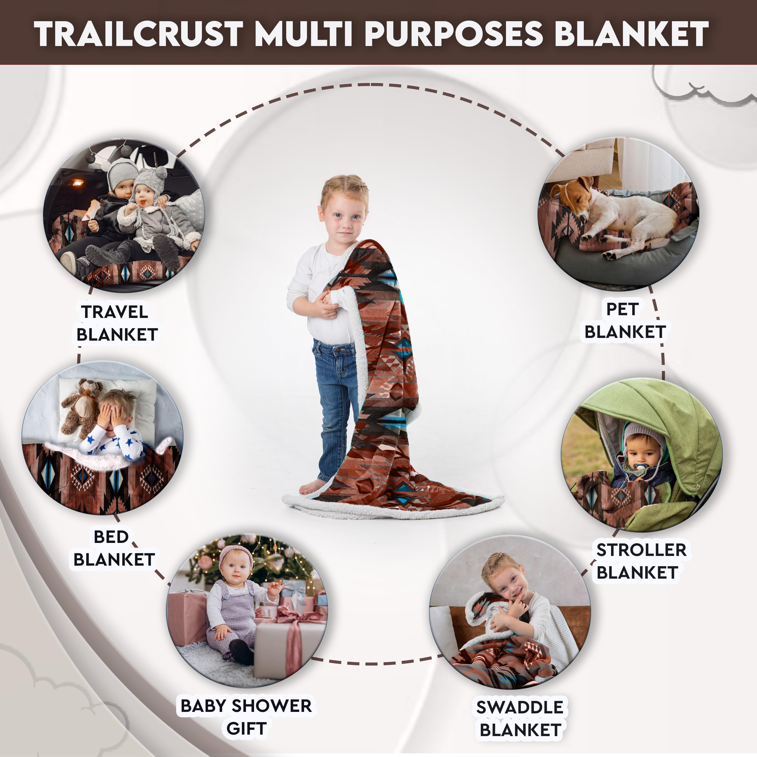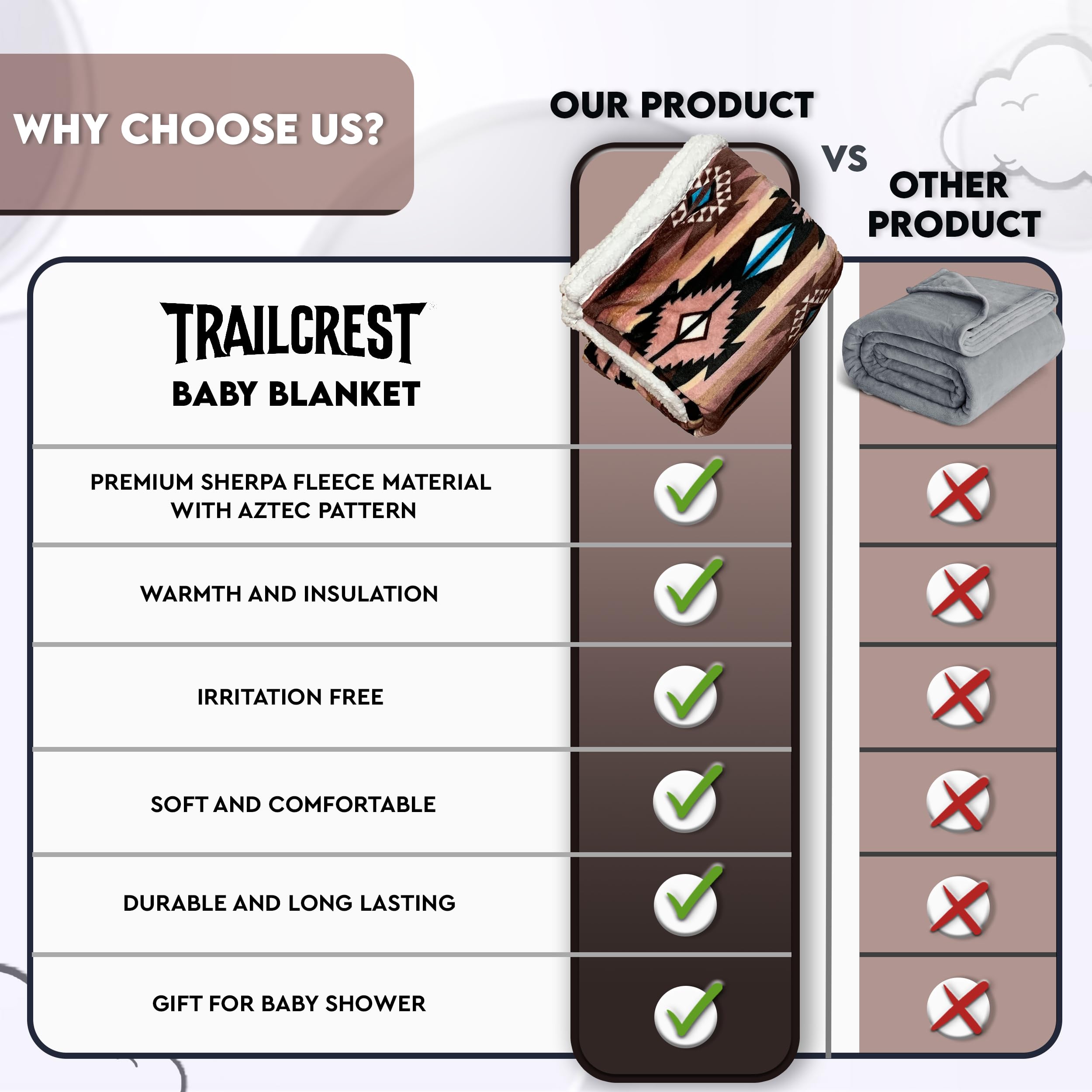 Discover The Softest & Coziest Sherpa-Lined Fleece Blanket For You & Your Baby! When it comes to your baby’s comfort, you cannot afford to settle for all those cheaply-made microfiber blankets. Now you spoil your newborn with the most luxurious and fluffiest blanket ever!Introducing The TrailCrest Premium Sherpa Fleece Plush Throw Blanket With Aztec Pattern! You and your little ones will love the ultra-soft Sherpa inner lining, which will not only keep you warm during cold winter months, but also feel great against your sensitive skin.Top 3 Reasons To Choose Our Sherpa Plush Blanket:βœ” Because You Want To Keep Your Baby Warm & Comfy What makes our blanket so special is that it’s not only warm but also extremely snuggly, cozy and fluffy. Your toddler will love napping with our blanket, which can also double as a security blanket for years to come.βœ” Because You Need A Plush Blanket For Your Movie Nights There’s nothing like coming home from work, making a hot chocolate or pouring a glass of red wine and watching a movie on your couch. What can make this feeling even better? The TrailCrest super-soft sherpa throw blanket!βœ” Because It’s 100% Mom-Approved Our versatile blanket can double as a stroller blanket, car seat baby cover, portable crib blanket, camping blanket, travel blanket, nursery cover or couch blanket. Plus, it’s 100% machine-washable and quick-drying!Need More Reasons? ➀ 100% Machine-Washable Polyester ➀ Generously Sized: 30” x 42” For All Uses ➀ Eye-Catching Aztec/Ikat Patterns ➀Comes in A Deluxe Gift Packaging ➀100% Unconditional Satisfaction Guarantee🌈 Choose from 5 Adorable Colors: Black & White - Burgundy & White - Gray, Black & Pink - Mountain Blue - Navy, Red & WhiteDon’t Wait Till They Run Out Of Stock - Click to Buy them NOW & Spoil Yourself with The Fluffiest Blanket Out There!