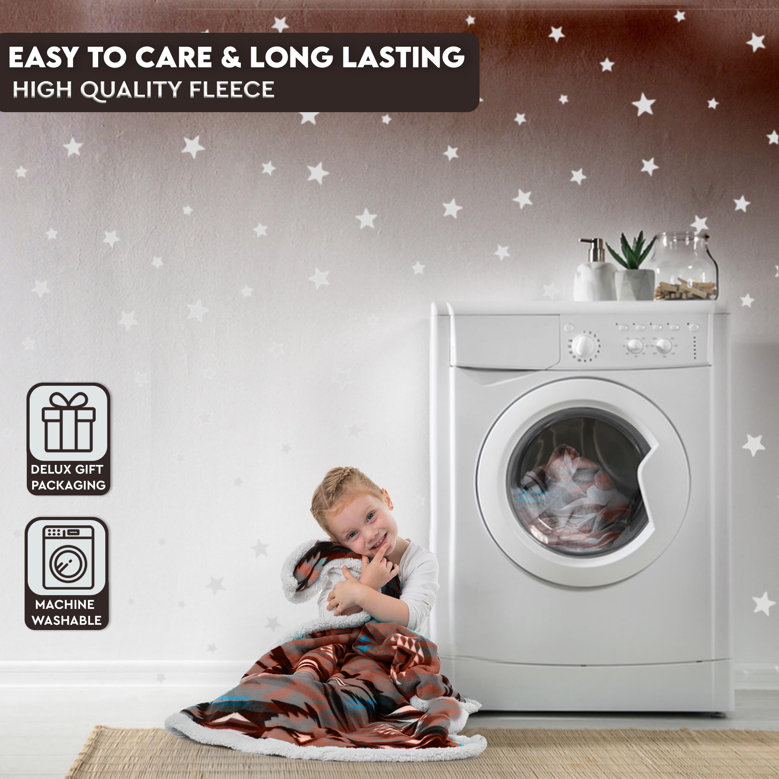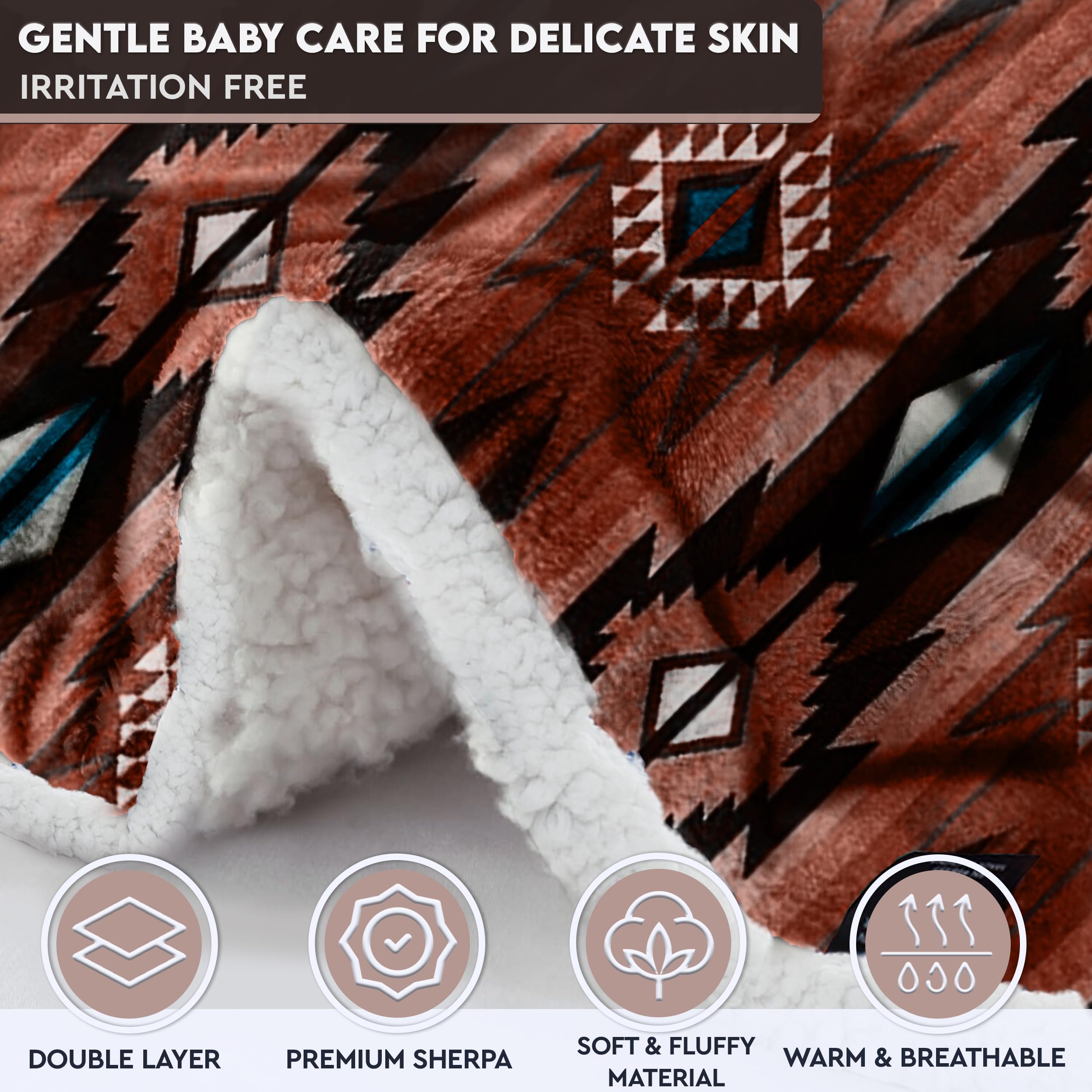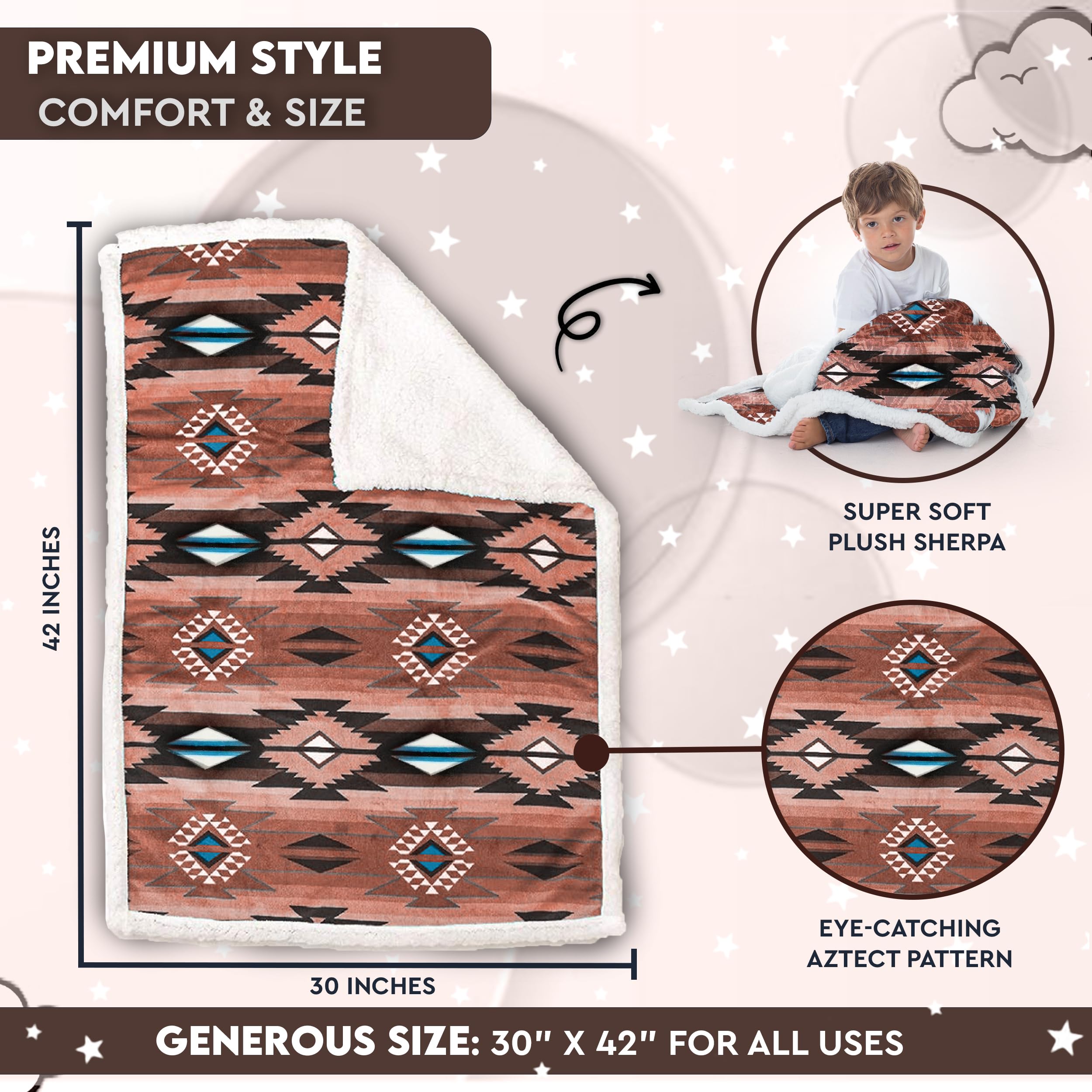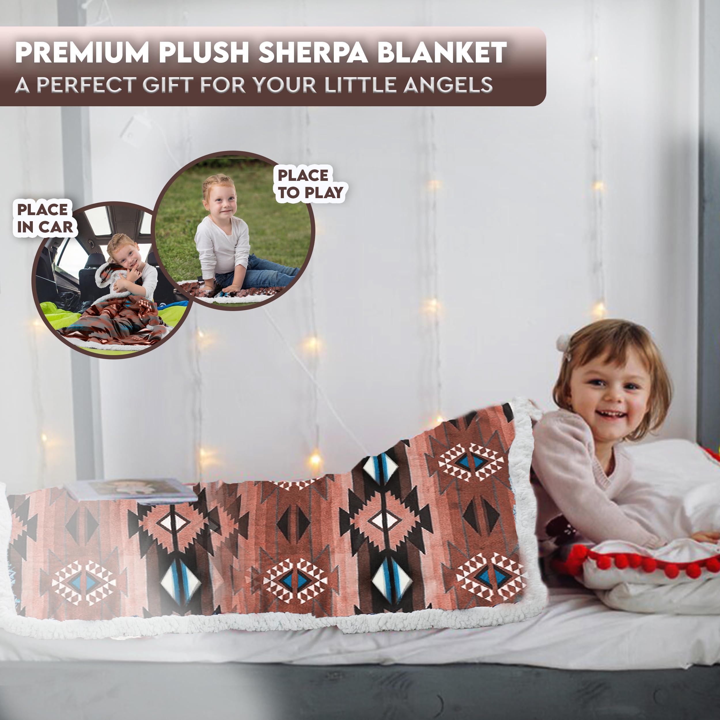 Ultra Soft Sherpa Fleece Throw Blanket | Cozy, Plush Baby Blanket for Kids | Reversible with Aztec Prints | Washable | Wide Size for Extra for Warmth & Comfort | Cute, Brown Aztec
